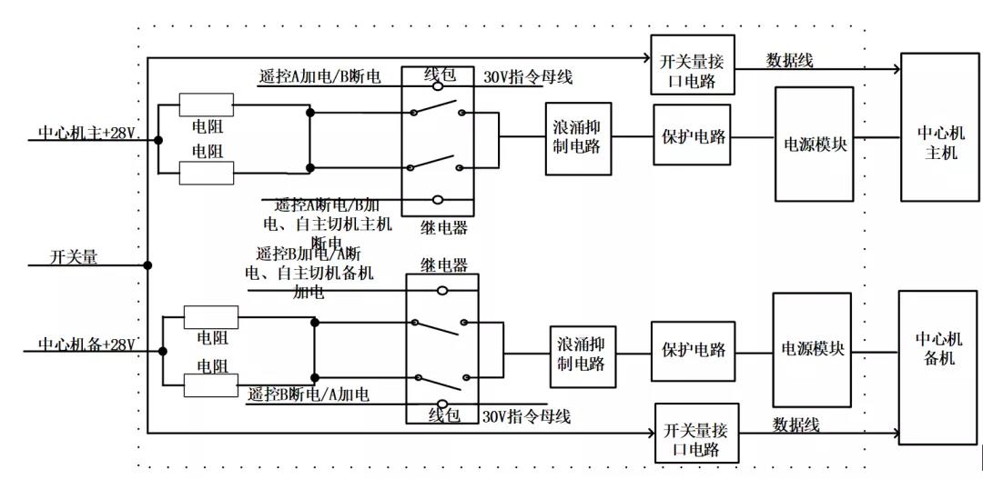 中心计算机仲裁逻辑框图如上面所示,外部直接指令A机加电/B机断电、B机加电/A机断电可实现中心机的主备互斥加断电控制。直接指令自主切机使能和自主切机禁止可实现是否允许主机故障后自主切换至备机。