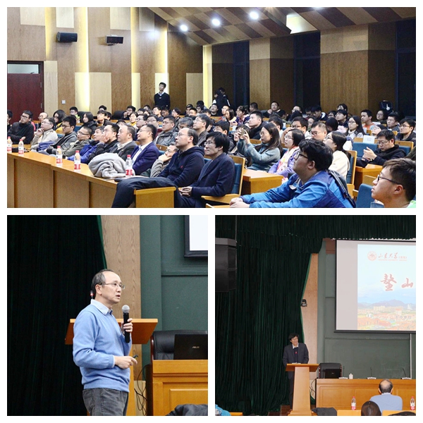 会议期间,在青岛校区政工处和前沿交叉科学青岛研究院共同主办的第十一期“鳌山讲坛”上,赵政国院士为青岛校区师生作了题为“粒子加速器探索物质世界之极小”的精彩学术报告。他从基本粒子的发现开始,介绍了物质世界的“标准模型”的建立过程,以及如何建造大型粒子加速器和探测器等重大科学装置,研究和发现物质微观世界的未知组分,探索其产生和相互作用所在时空的规律和本质等。赵政国院士还以当前世界上最高能量的欧洲“大型强子对撞机”和我国唯一的“北京正负电子对撞机”为例,介绍了这些实验上取得的最新亮点成果,展望了高能加速器物理实验领域的研究计划。报告结束后,针对现场学生提出的诸多问题,赵政国院士从科学的角度为其一一解惑。