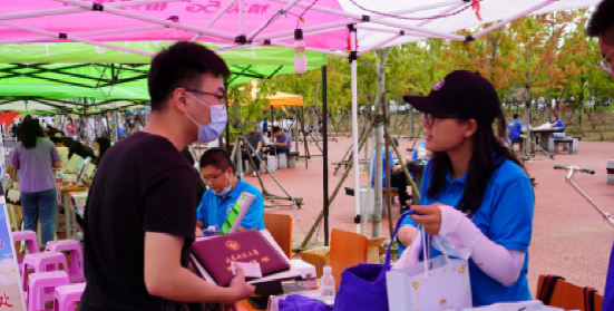 并不似其他同学离家长途跋涉,我家位于黄岛区,相对学校来说并不算太远,于是公交地铁便成了我来校报到首选的交通方式。虽然学校距离地铁有一段距离,但我却并不担忧,因为研究院在进行开学准备事项说明时就强调过志愿者服务的全覆盖。果不其然,一出地铁站,我就看到了身穿红色志愿者服装的志愿者们。在志愿者的热情引导下,我经过手部消毒、查看返校材料、扫描返校码等程序后,便坐上校车直达学校迎新广场;下车后也有志愿者帮忙将行李暂时寄存,让我能够一身轻松地前往研究院报到点报到。在我一头雾水不知向哪儿走时,一位志愿者似乎看出了我的迷茫,主动上前询问我的研究院,并引导我找到了前沿交叉科学青岛研究院报到点。