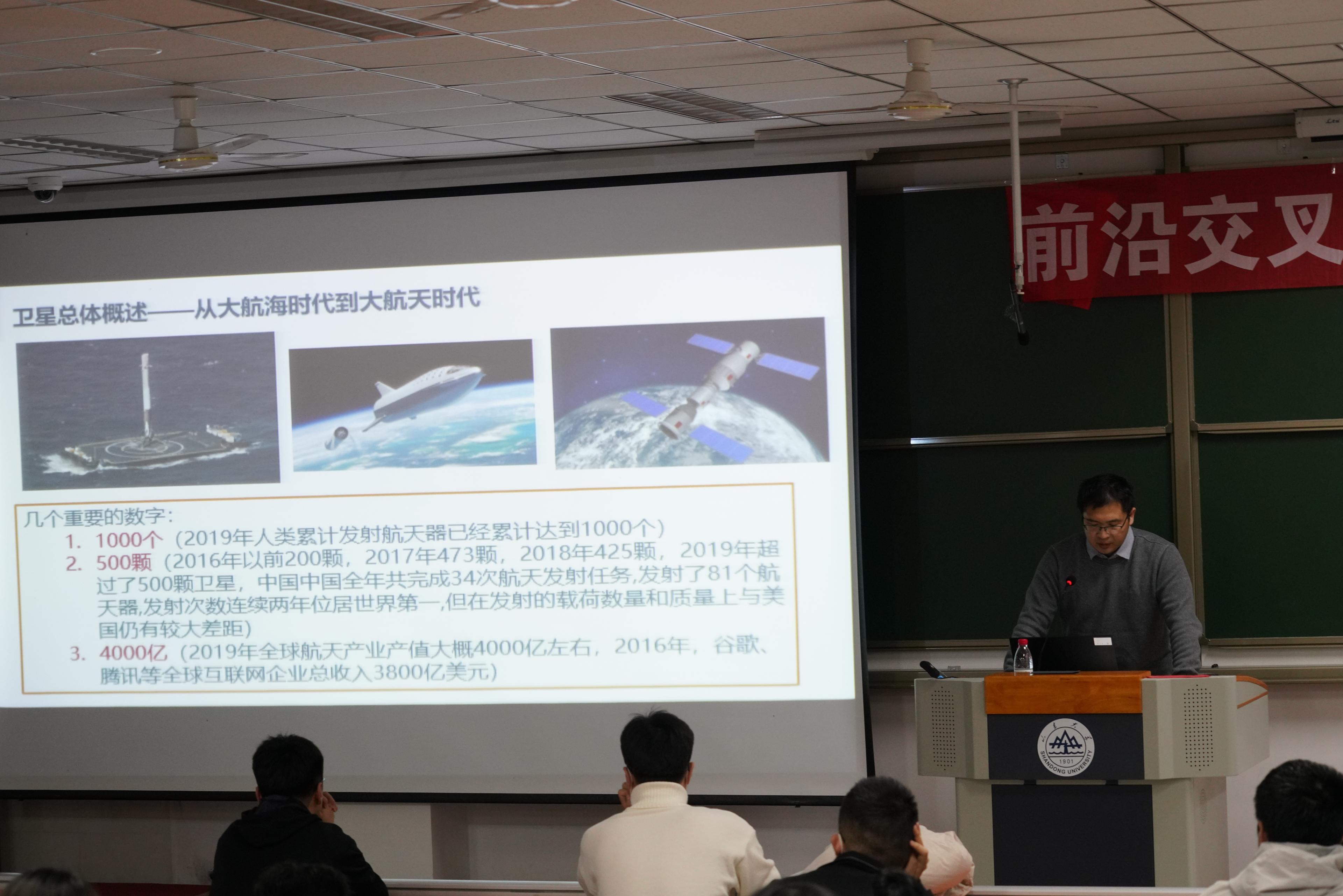 讲座中,徐拓奇研究员首先介绍了卫星总体概述,开门见山地指出了卫星的巨大作用。他说卫星已然是一门支柱型技术,提升了人类认知世界的维度。以商业遥感卫星为例,徐拓奇研究员介绍了卫星平台的基本组成、卫星各个分系统的基本原理。徐老师用生动形象的图片、简略细致的演讲,让同学们了解了卫星的设计与制造过程,明白了卫星获取能源的机理,知晓了卫星实现天地通信的原理。