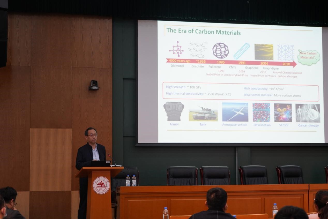讲座中,张锦院士首先介绍了中国石墨烯的产业现状以及石墨烯材料的制备。张锦院士用通俗易懂的语言,循序渐进,旁征博引,为同学们深入浅出的讲解单壁碳纳米管的结构控制生长方法。报告中,他首先从碳元素多样的电子杂化轨道为切入点,对碳材料的结构、性能与应用进行了介绍;随后,他提到碳纳米管存在zigzag、armchair、chirality三种构型,而在实际应用过程中对高纯度碳纳米管的金属性和半导体性的差异性合成有较高要求,因此他们团队一直致力于通过设计调控催化剂的数目和配比,控制反应条件合成结构一致、排列整齐的高密度单壁碳纳米管;最后,他进一步剖析了碳纳米管材料目前面临的问题与挑战,希望大家能够秉持工匠精神,把每一种材料做精做透,制备决定未来!