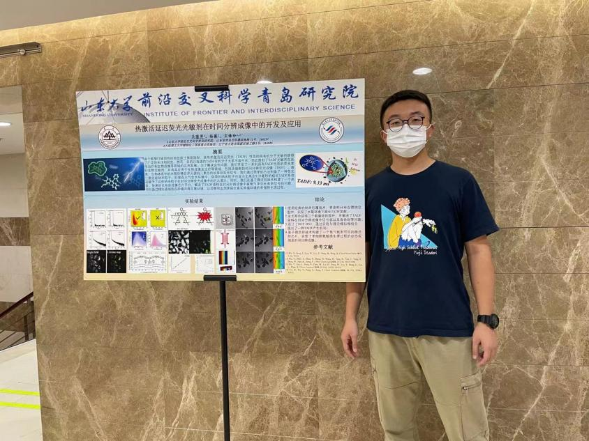 26日,大会还组织了全国前沿交叉研究院院长联席会年会暨第二届前沿交叉博士后论坛和全国前沿交叉研究院院长联席会年会暨北京大学第四届前沿交叉学科研究生论坛,前沿交叉科学青岛研究院学生吴蓥男作为学生代表参加研究生分论坛,展示热激活延迟荧光光敏剂在时间分辨成像中的开发及应用的学术海报。此外,前沿交叉科学青岛研究院向参会的40余所高校院所展示我院海报,展现研究院在前沿研究、交叉融合发展、人才培养等方面取得突破性进展和不断增强的综合实力。