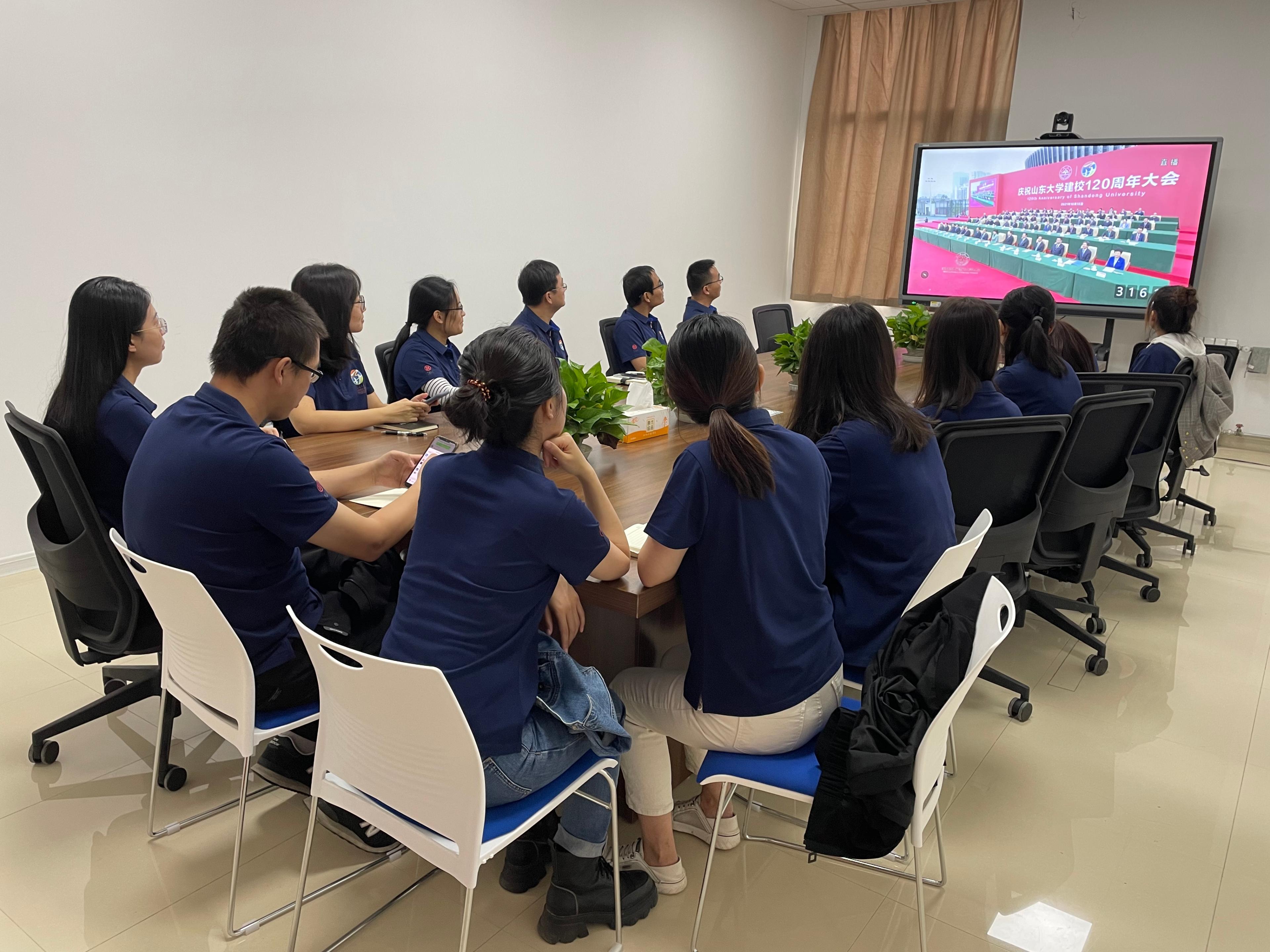 研究院全体在校师生在各分会场全程参与、认真观看。校庆大会的盛况让研究院师生心潮澎湃、感怀万千。大家纷纷表示将继续发扬“学无止境、气有浩然”的山大精神,弘扬山大文化,传承“山大基因”,做学校和研究院发展的重要参与者、推动者和建设者。