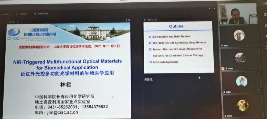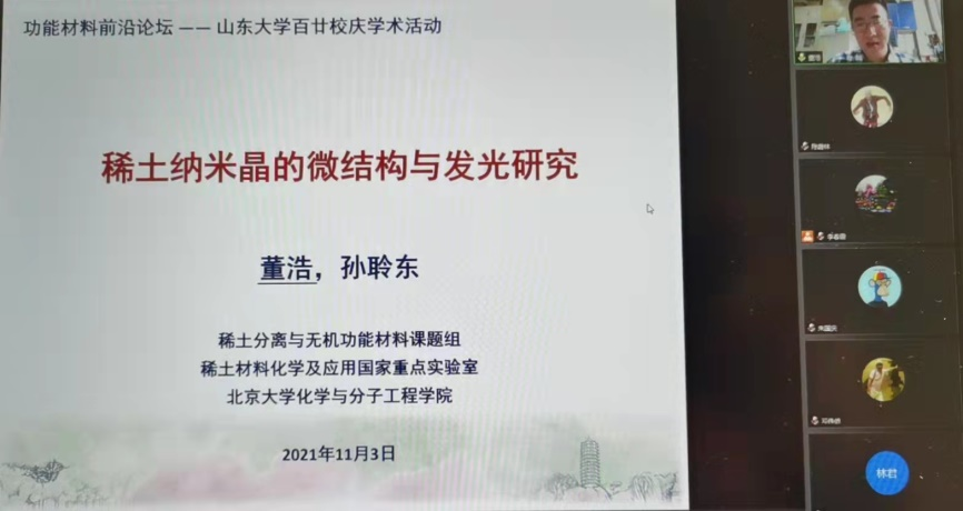 与会期间,吉林大学刘冰冰教授、北京大学孙聆东教授、复旦大学车仁超教授、中国科学院长春应化所林君研究员、哈尔滨工业大学刘绍琴教授、新疆大学黄岭教授、苏州大学刘庄和李亮教授、大连民族大学董斌教授、华南理工大学周时凤教授、南方科技大学权泽卫教授、南开大学杜亚平教授等专家学者围绕磁性材料、碳材料、稀土发光材料、钙钛矿光电转换材料等多个材料领域做了精彩报告,全方位、多角度介绍了这些材料的最新进展、性能调控以及临床转化等相关内容,并与参会的科研人员和研究生就相关问题进行了深入交流和讨论。
