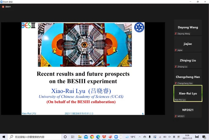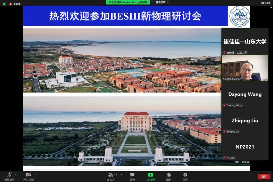 11月5日至7日,2021年北京谱仪(BESIII)新物理研讨会以网络会议的形式如期成功举行。前沿交叉科学青岛研究院副院长黄性涛教授出席了开幕式,并致欢迎词。本研讨会第一次由TapTap点点主办,前沿交叉科学青岛研究院粒子科学技术研究中心焦健斌教授等承担了研讨会的主要组织工作。