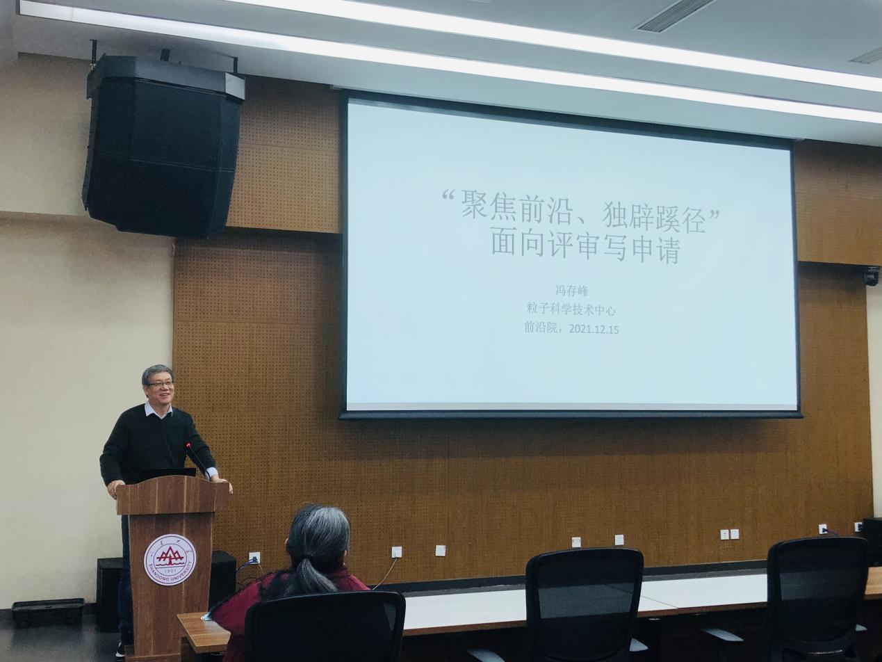 会议首先对研究院近年来国家基金集中申报立项情况做了总结分析,针对不同类型科研人员、不同类型的项目开展申报动员,对申报注意事项、申报期内重要时间节点进行提醒。会议邀请冯存峰教授、曹杉杉教授、刘锋研究员做项目申报经验交流专题报告。冯存峰教授结合自身经验对国家基金评审要点和申请书各部分的撰写方法和要求做了详细解读,指出科学价值、前期工作基础和可行性的重要性;曹杉杉教授和刘锋研究员从前期工作准备、申报代码的选择、关键词的选定、问题属性的确立以及申请书内容撰写注意事项等方面分享各自宝贵经验。