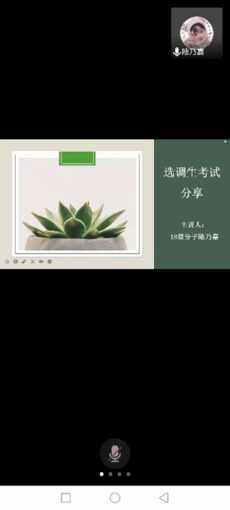 陆乃嘉从准备选调生考试的试前、笔试和面试三个阶段进行经验分享。她告诉同学们准备考试一定要注意方式方法,好记性不如烂笔头,多看多听多练。平日需要大量收集相关信息并明确各地方选调生的具体要求,通过网课、做真题、模拟训练和关注人民日报、半月谈APP和新闻联播等媒介发布的相关时政信息进行笔试面试拔高。
