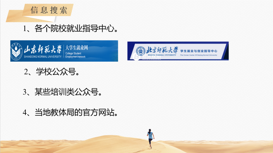 郭恰恰就化学专业的就业方向进行了简单列举,并针对简历制作和面试技巧做出分享,她讲述简历一定要突出优势并展现相关经验,面试前可就报名学段购买相应课本和教师指导用书,提前练习重点课程。此外,她还给同学们展示了部分教师招聘的就业渠道,帮助同学们为今后的求职积累经验,提高求职竞争力。