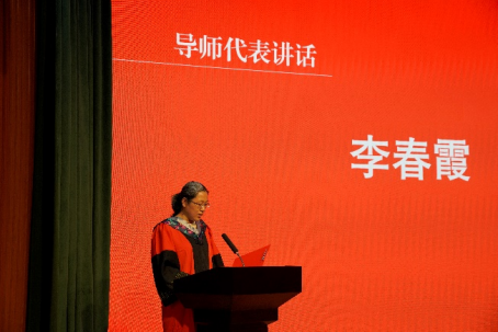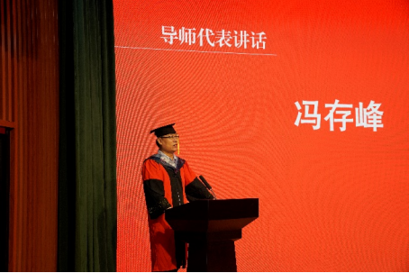 博士研究生导师代表冯存峰教授、硕士研究生导师代表李春霞教授代表全体教师先后发言。冯存峰教授对全体毕业生的未来之路充满信心,是耐心的嘱托更是真情流露的知心话。他指出,我们已经培养出国家建设的有用之才,新的岗位,既是新的机遇,亦是新的挑战,他暖心鼓励每一位毕业生要时刻保持自信,要相信自己终将成为领域专家,更要脚踏实地、勇担责任、遇到挫折永不气馁。李春霞教授希望全体毕业生心中要有追求,勇敢追梦,眼睛才能看得远、看得广。