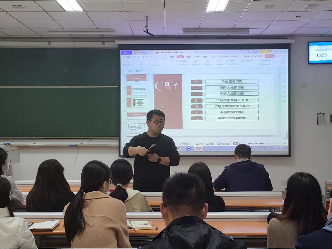 随后,祝凡平说明了普通耗材系统和危化品采购系统的区别和联系,并对在场师生提出的供应商货期、危化品标签等问题进行了详细讲解。