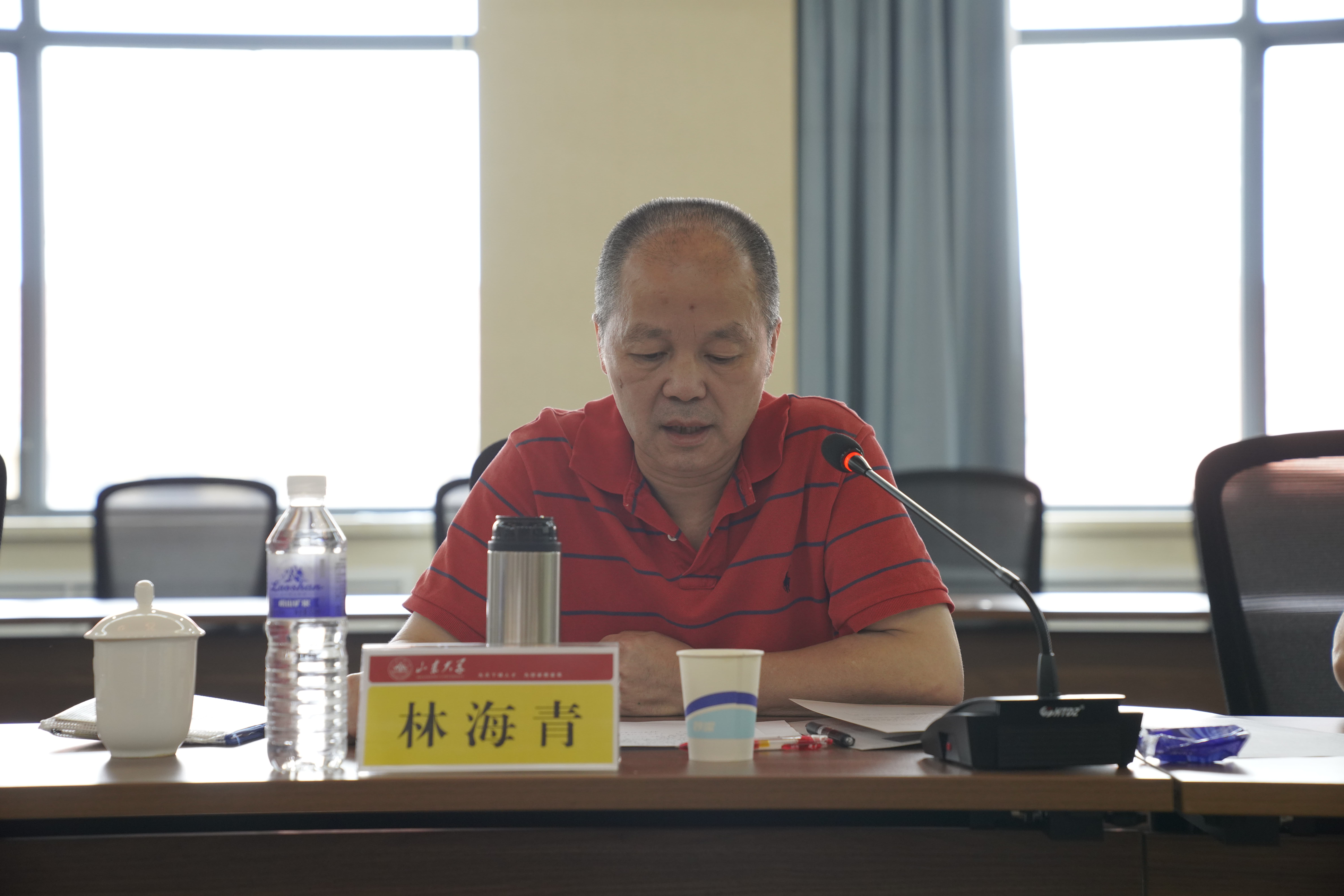 前沿交叉科学青岛研究院党委书记赵罡主持会议,研究院领导班子成员、教师代表参加会议。