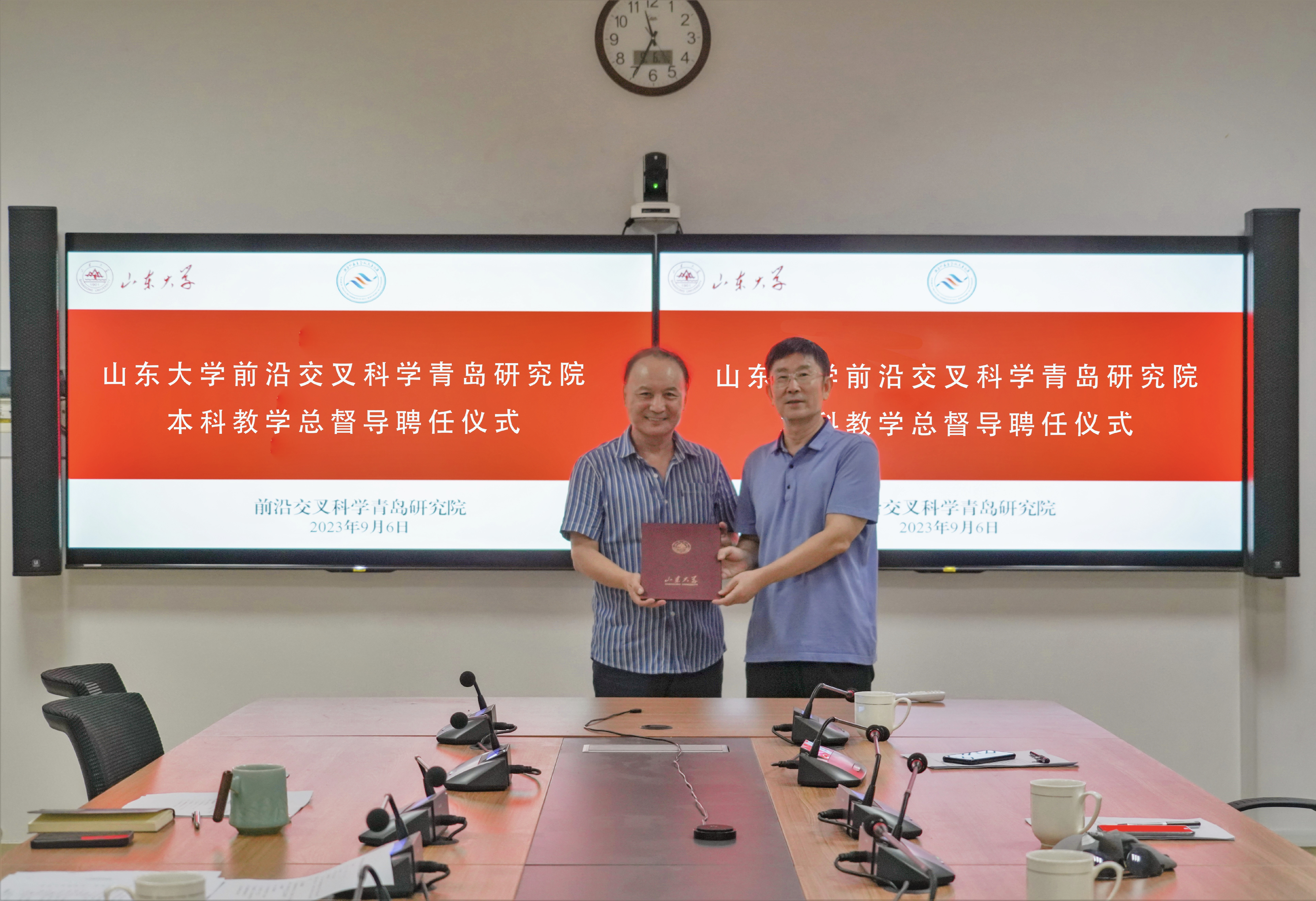 为进一步健全研究院本科教学质量监控体系,加强教学过程监督与管理,维护正常教学秩序,持续改进教学工作,提高教学质量,研究院经讨论确定聘任张酣教授为本科教学总督导,韩圣浩为张酣教授颁发了聘书。