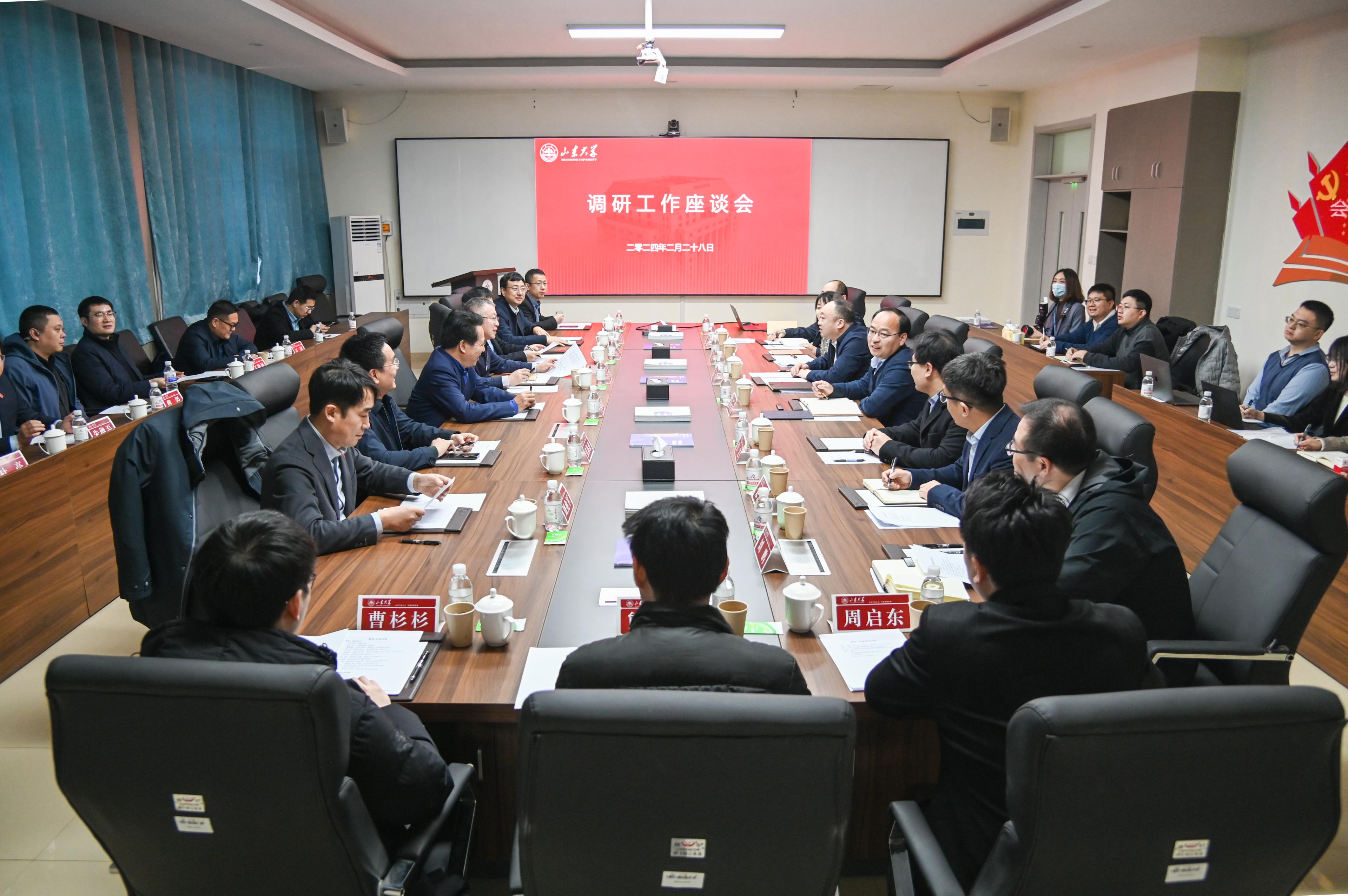 校党委常委、副校长、齐鲁医学院院长易凡,校党委常委、副校长、青岛校区校长曹现强,校长助理、青岛校区党工委书记邢占军,青岛校区党工委副书记、党工委(校长)办公室主任张海波参加调研座谈。