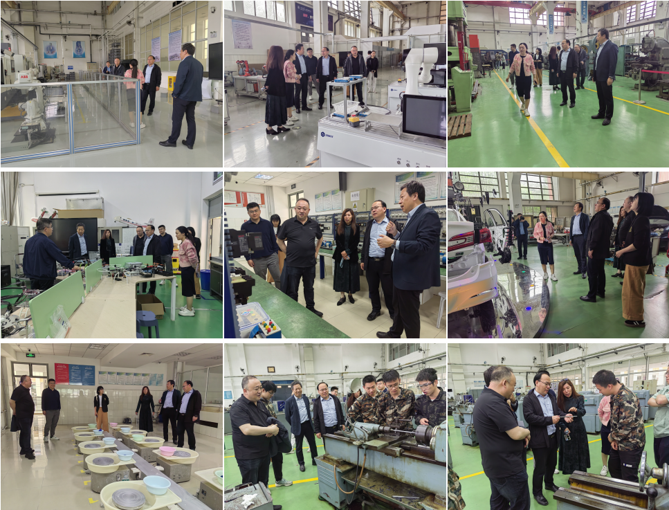赵罡、黄性涛一行还参观了工业机器人双模块、激光加工训练区、中心创客路演长廊、无人机、电子、陶艺等教学训练区,实地了解传统工程训练项目改革与新型实践项目建设情况。