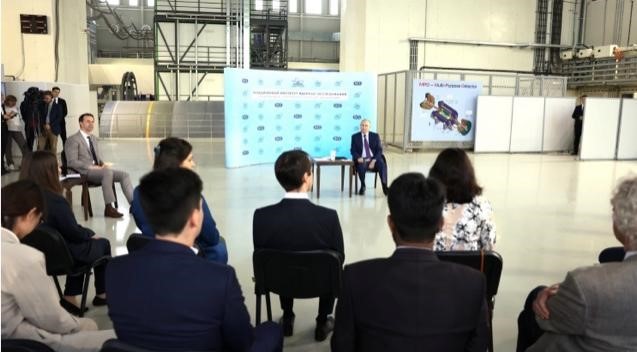 当地时间2024年6月13日,俄罗斯总统普京访问了杜布纳联合核子研究所(Joint Institute for Nuclear Research, JINR),参观了正在建造中的重离子超导同步加速器(NICA)及其上的MPD探测器。随后,他会见了正在NICA上从事研究的科学家们并发表讲话。前沿交叉科学青岛研究院粒子科学技术研究中心杨驰教授指导的我校2020级博士研究生王永红受邀作为青年学者参加了会见活动。王永红同学是首批在国家留学基金委资助下赴MPD实验进行联合培养的研究生。她的合作导师是彼得堡核物理研究所研究员、现任NICA-MPD国际合作组发言人Victor Riabov。