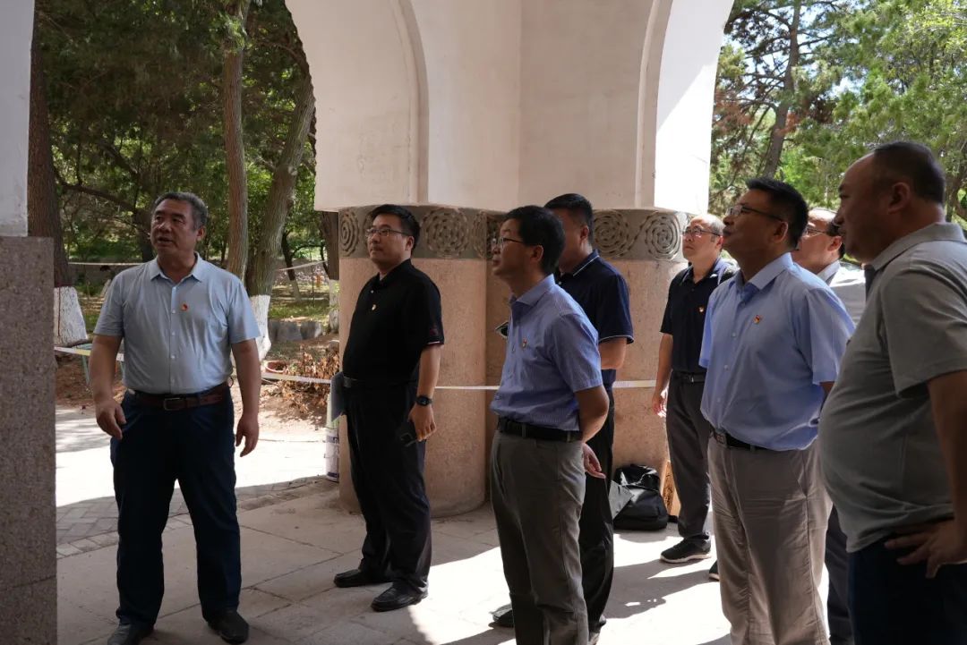 陈宏伟一行走访中国海洋大学鱼山校区,实地参观六二楼、胜利楼、科学馆、六二广场等办学旧址,瞻仰赵太侔、王统照、闻一多等名人雕像。在档案系1983级校友、中国海洋大学档案馆校史研究室主任杨洪勋的讲解下,重温原山大物理系发展历程,回顾20世纪30年代至50年代学校在青岛办学的辉煌历史。