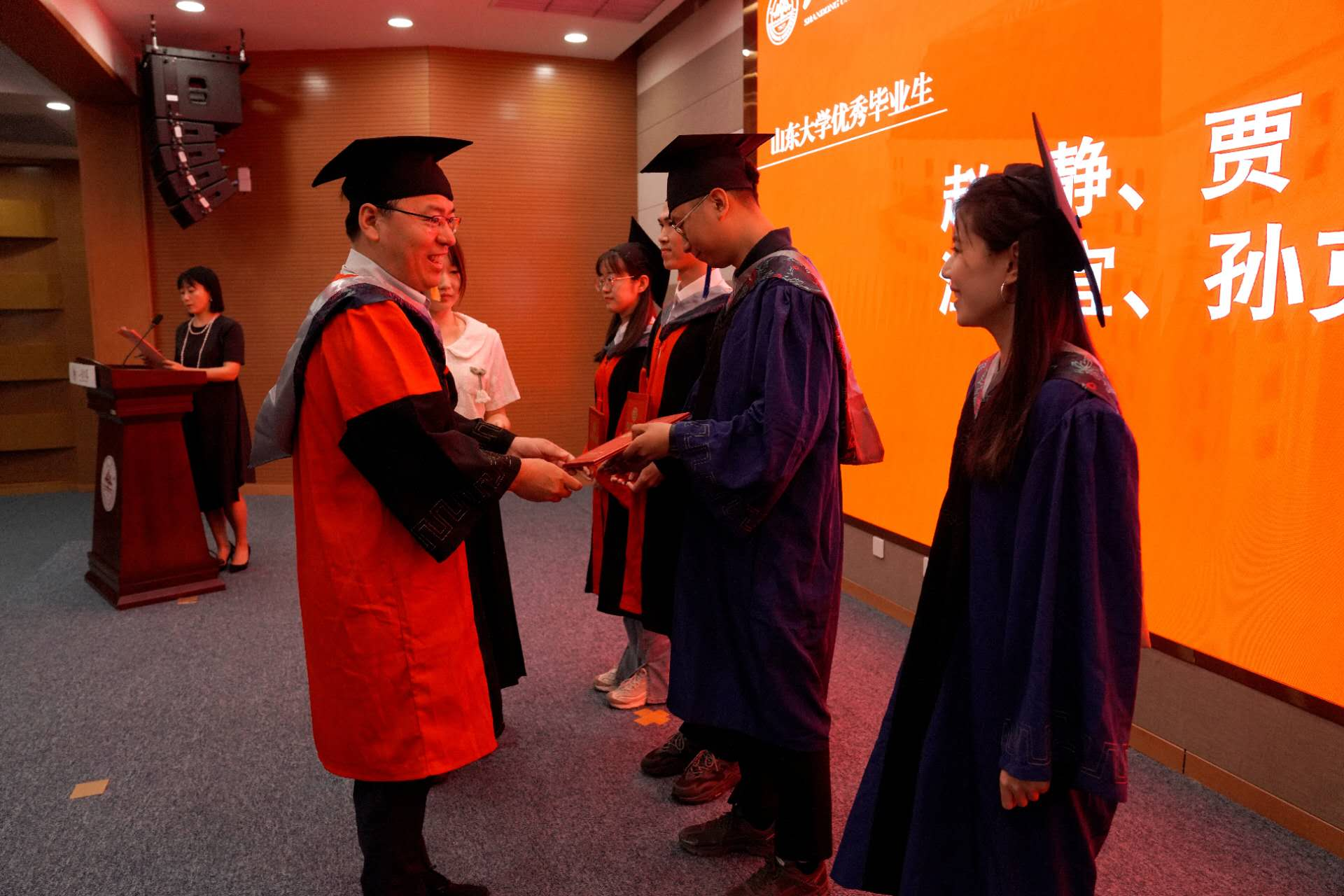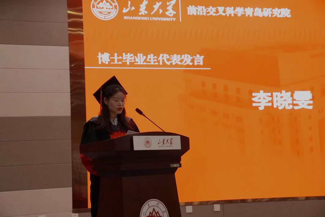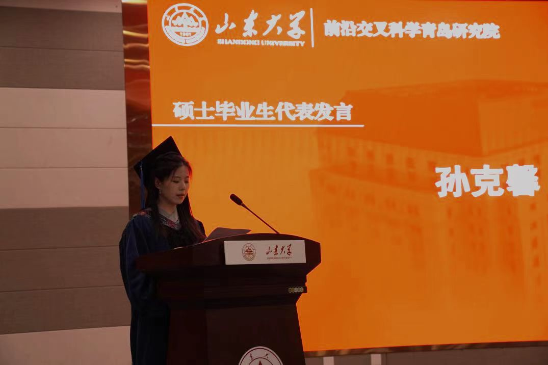博士毕业生代表李晓雯、硕士毕业生代表孙克馨在发言中回顾了求学期间的成长与收获,表达了对母校、研究院和老师们的衷心感谢.并表示在接下来的日子里,时刻秉持“为天下储人才、为国家求富强”的责任担当,不忘“学无止境、气有浩然”的校训教诲,以母校的优良传统为指引,不断追求卓越,不断超越自我,在祖国富强和民族振兴的征程中持续作出山大学子应有的贡献。