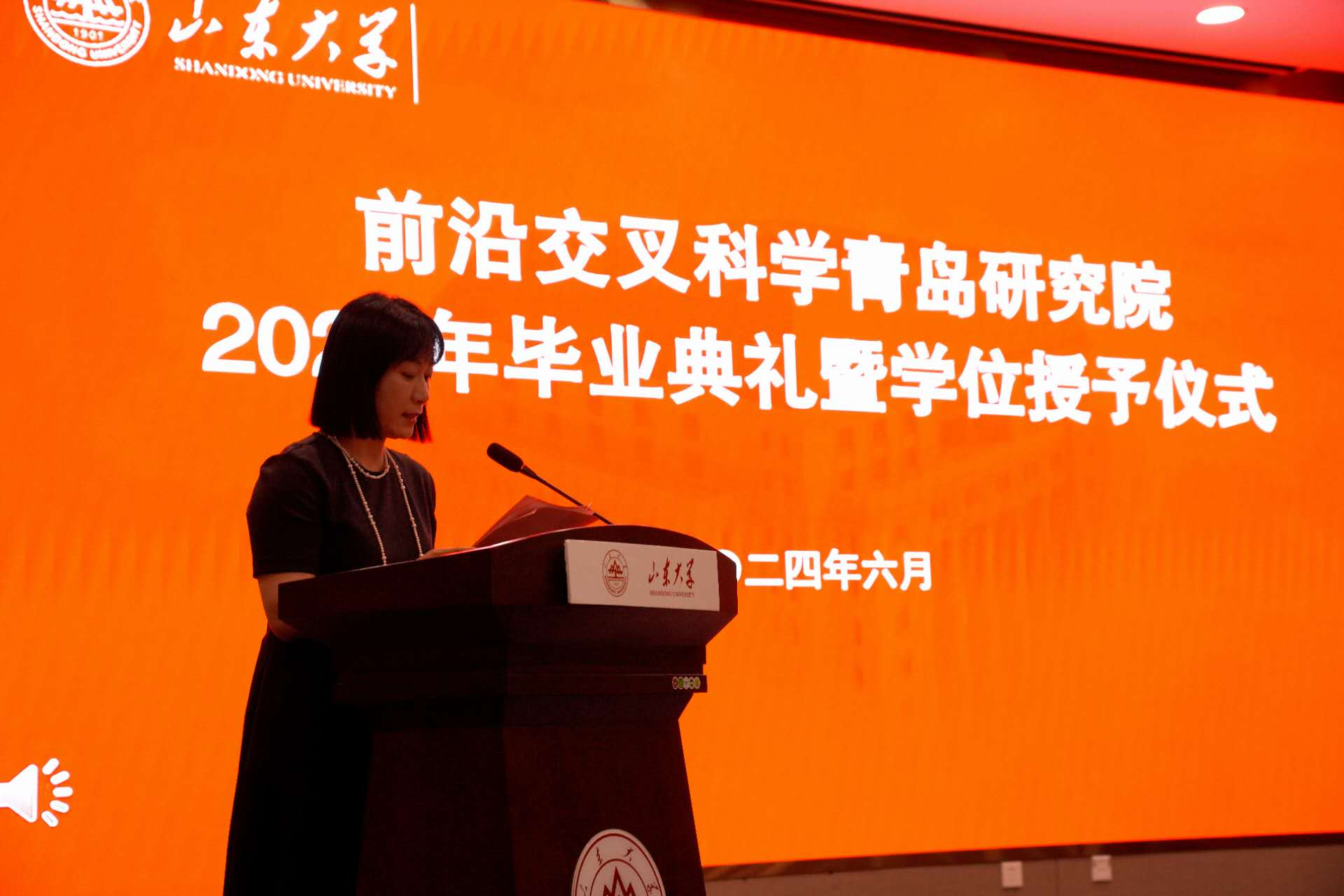 6月25日,前沿交叉科学青岛研究院2024年学生毕业典礼暨学位授予仪式在博物馆二楼报告厅顺利举行。前沿交叉科学青岛研究院院长黄性涛教授、前沿交叉科学青岛研究院学位评定分委员会主任梁作堂教授出席典礼并为2024届毕业生授予学位。前沿交叉科学青岛研究院党委书记赵罡出席典礼并致辞。典礼由研究院党委副书记张杨主持。全体毕业生、硕博研究生导师及部分毕业生家长参加典礼。