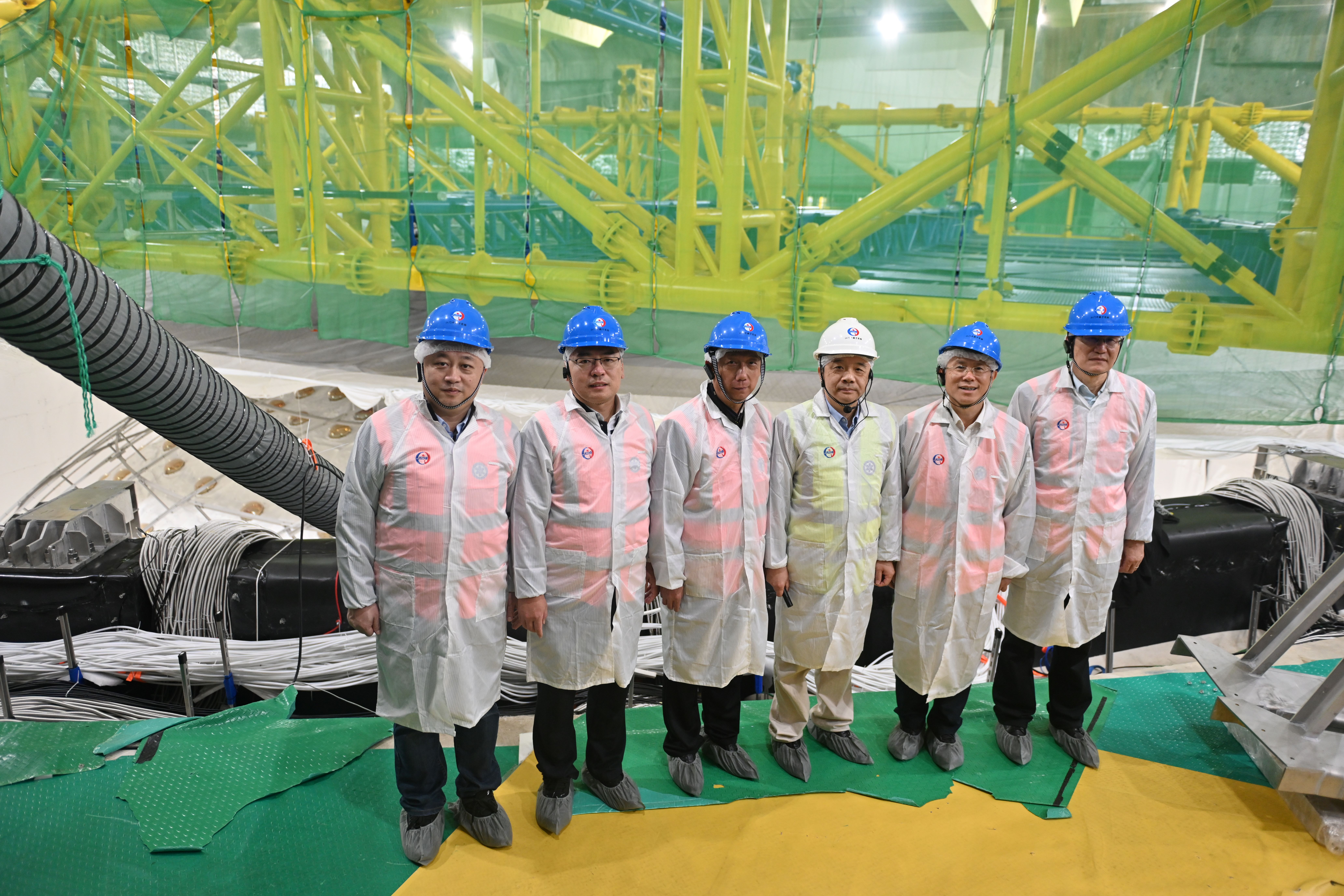 考察期间,王贻芳还陪同李术才前往位于地下700米深处的实验大厅,实地查看中心探测器、液闪灌装间及附属洞室等,并对中心探测器的主体结构、关键器件以及质量控制等情况进行了详细讲解。
