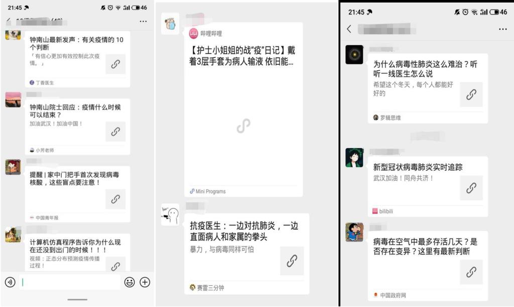 每一位团员通过一些官方微信号和新闻报道了解疫情现状,并及时转发防疫新闻。通过及时发布权威信息,合理的宣传防控措施,有效疏导了同学们在疫情期间的恐慌和不安情绪,传播了健康卫生知识,而且遏制了谣言扩散,巩固了战胜疫情的信心和决心。