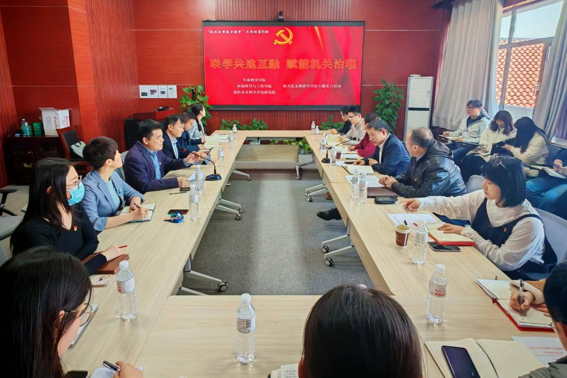 三个学院机关党员30余人参加活动,围绕基层党建、学院机关治理能力提升等深入交流研讨,积极探索学科交叉融合党建新模式。