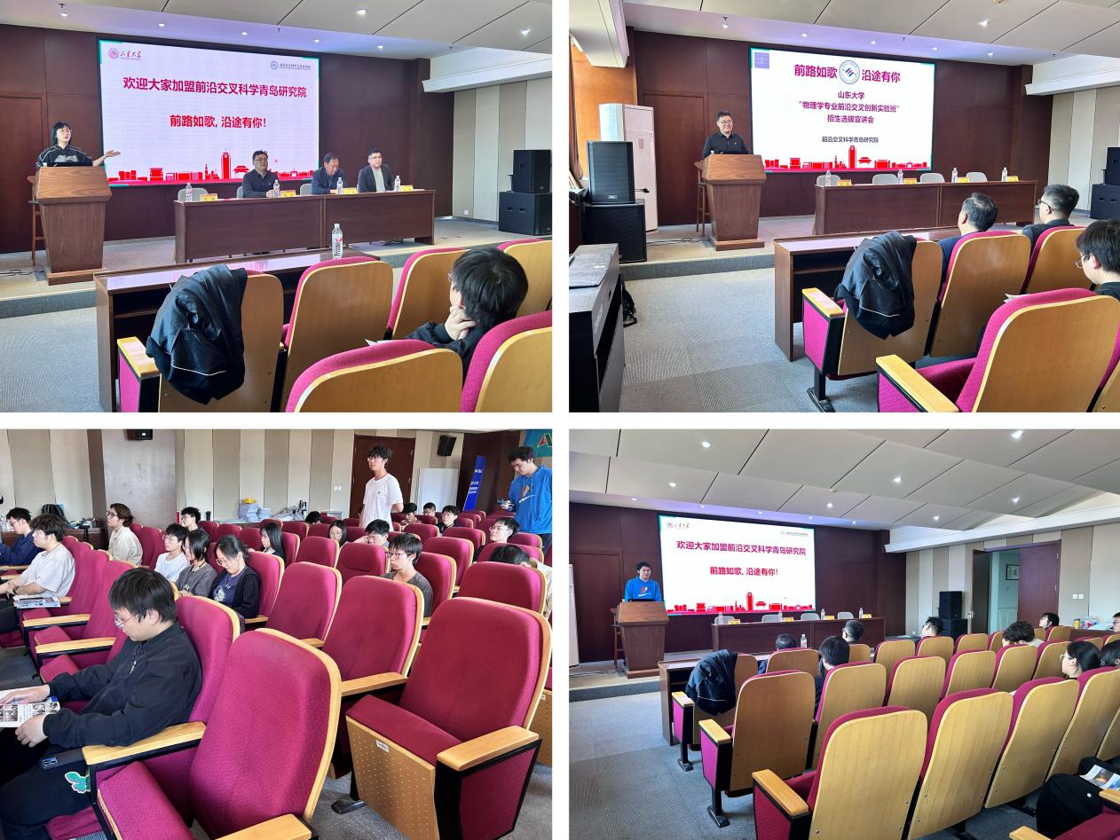 物理学专业前沿交叉创新实验班是我院凝聚青岛校区地域优势以及研究院优势研究领域,主动对接国家对基础科学高端人才需求的重要实践。本次转专业选拔招生宣讲会的成功举办,旨在吸引更多热爱物理专业的学子报考实验班,为本科生提供前沿交叉领域成长基地。我院今年拟面向2024级本科生招收40名转专业学生。欢迎大家积极报考前沿交叉科学青岛研究院!
