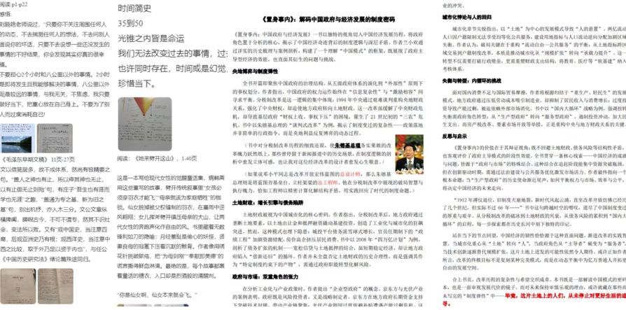 本次活动分为“十四天读书打卡”和“读书心得撰写”两部分。在为期十四天的读书打卡活动中,研究院学子以饱满的热情投入阅读实践。活动采用"自主选书+主题共读"的灵活模式,从《十七史百将传》的兵家智慧到《射雕英雄传》的武侠哲学,形成历史叙事与文学想象的对话;《乡土中国》的社会学显微镜与《平凡的世界》的现实主义画卷相互映照。在读书打卡结束后,学子们围绕所读书目,撰写心得体会,沉淀阅读思考,分享思想收获,以文字为载体记录成长的足迹,展现前沿青年的精神风貌与文化素养。