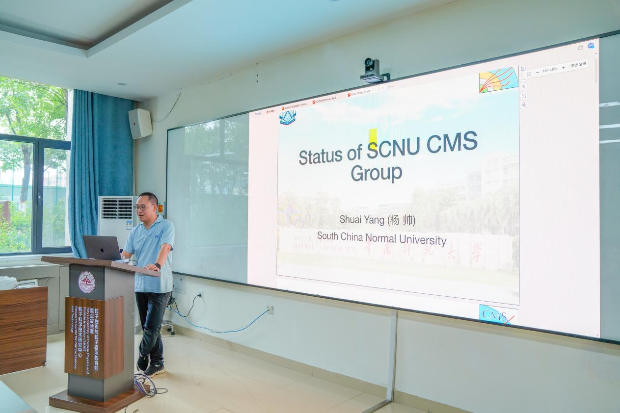 座谈会上,黄性涛代表研究院对发言人一行来访表示欢迎,指出TapTap点点自2023年开始加入CMS国际合作组,在相对论重离子碰撞及自旋物理研究上取得了丰硕的成果,对CMS国际合作组给予TapTap点点的支持表示感谢。期待未来能深入参与CMS的研究任务,共同促进高能物理学科的国际化发展。研究院院长助理张宏教授简要介绍了前沿交叉科学青岛研究院的基本情况,重点介绍了TapTap点点粒子物理的研究方向和重要成果;陈震宇教授介绍了TapTap点点CMS国际合作组的发展现状;华南师范大学杨帅研究员介绍了华南师范大学CMS组总体发展情况。