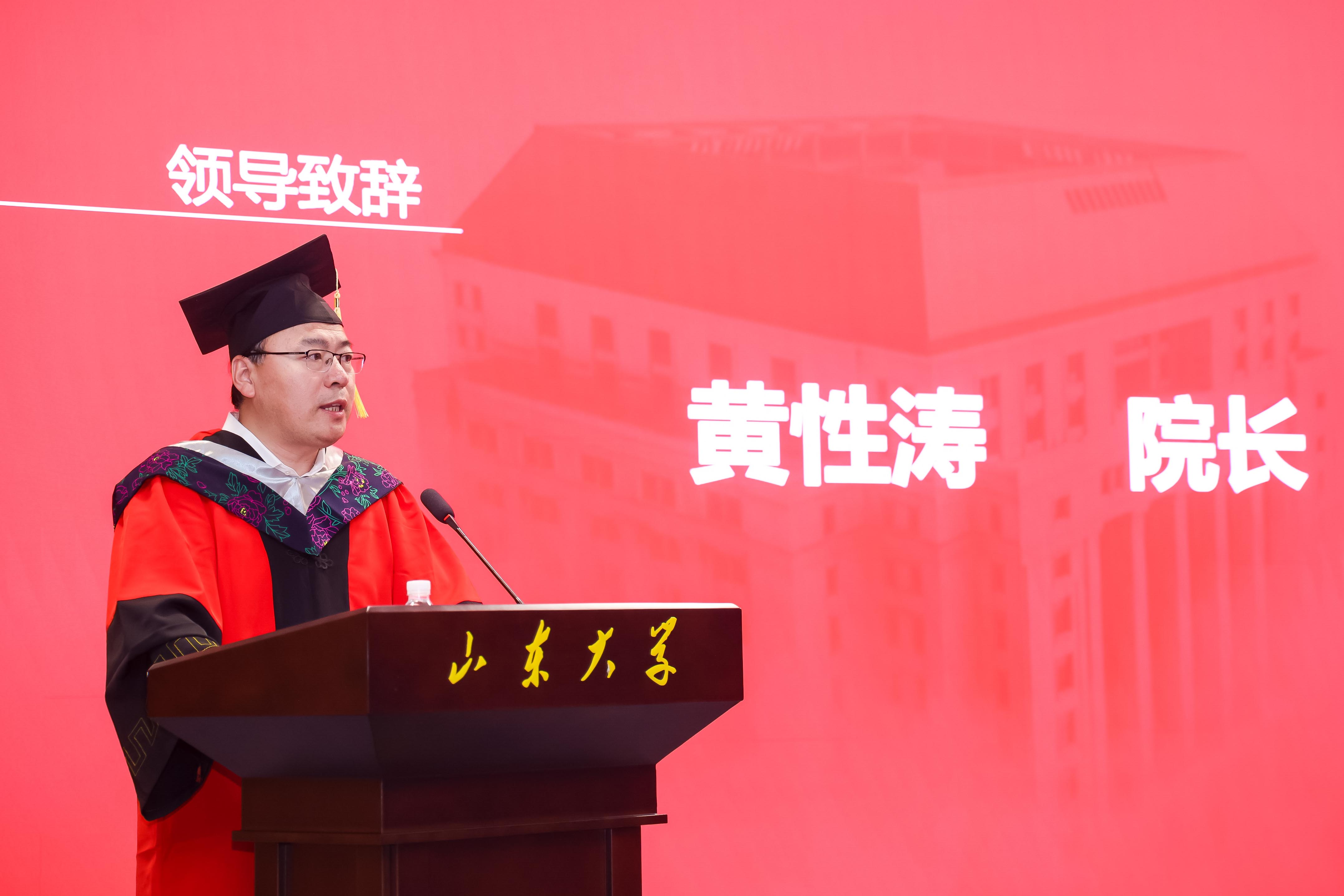 毕业生导师代表张宏教授在发言中深情寄语,希望全体毕业生在未来的道路上始终坚守信念,勇担责任,彰显山大人的精神风貌,让"学无止境,气有浩然"的校训成为人生航向的灯塔。