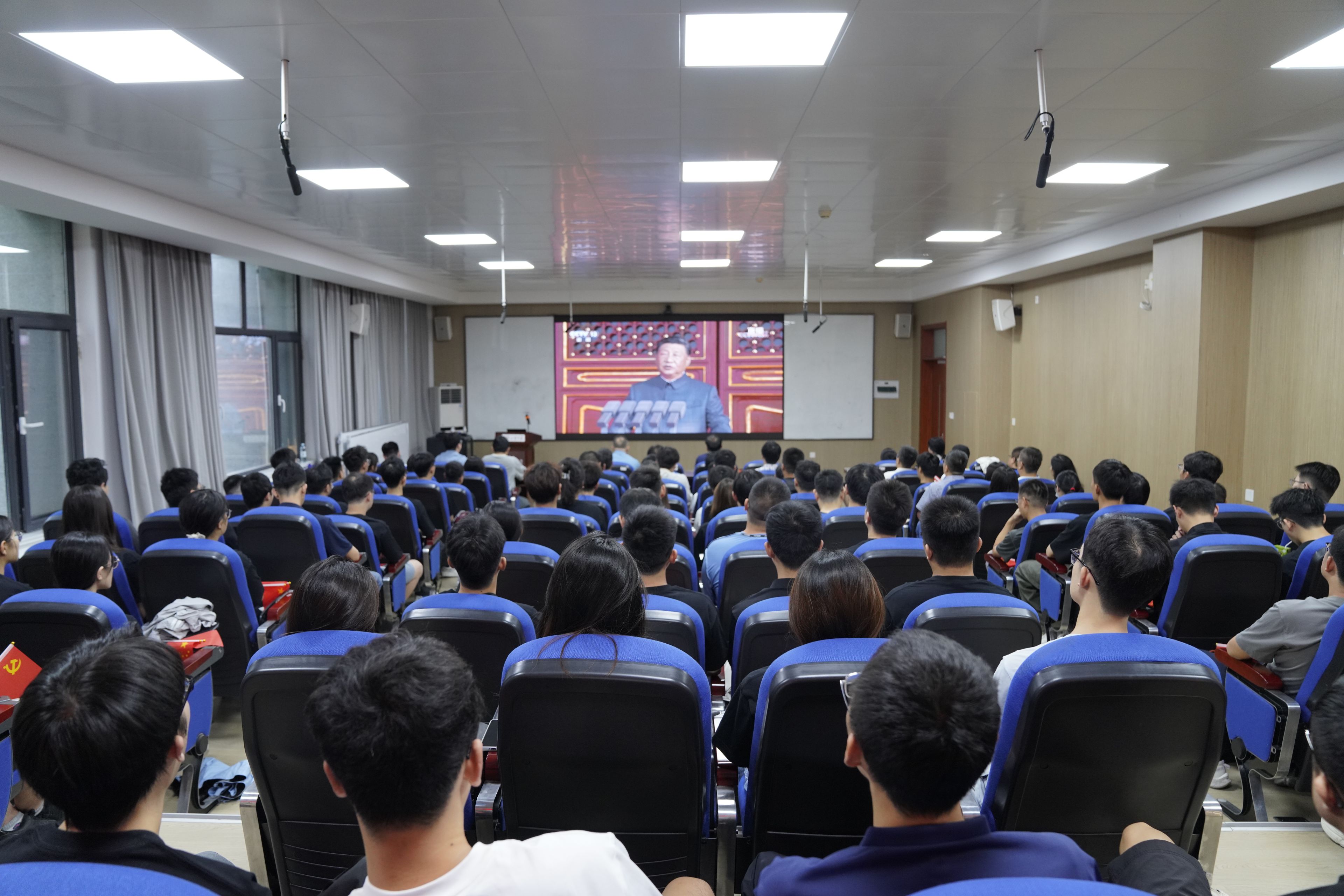 9月3日上午9时,纪念中国人民抗日战争暨世界反法西斯战争胜利80周年大会隆重举行。前沿交叉科学青岛研究院在青岛校区第周苑E座122室设立主会场,组织全体师生通过电视、网络、广播等形式,认真收听收看大会直播。
