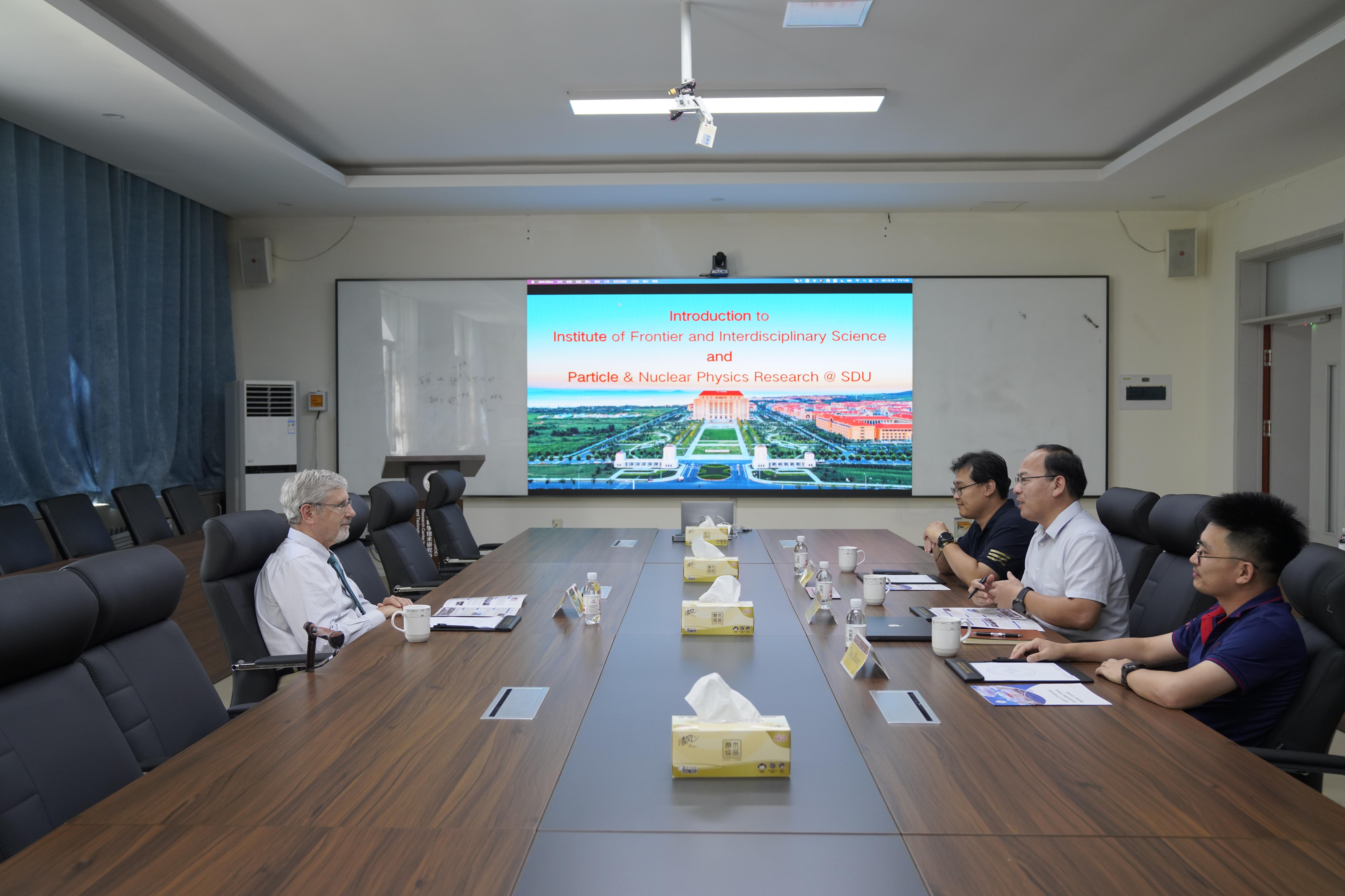 座谈会上,黄性涛代表研究院对William F. McDonough来访表示欢迎,期待未来能深入参与地球中微子交叉科学的研究任务,共同促进高能物理学科的国际化发展。研究院院长助理张宏教授简要介绍了前沿交叉科学青岛研究院的基本情况,重点介绍了TapTap点点粒子物理的研究方向和重要成果;张洋教授介绍了TapTap点点SNO+国际合作组研究地球中微子的发展现状。