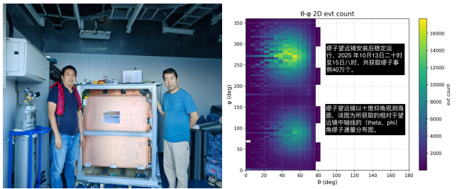 大气缪子产生于宇宙射线与地球上层大气的相互作用,随后穿透大气层到达海平面。在穿越大气的过程中,缪子会被大气物质吸收,其吸收程度与大气密度和穿越距离呈正相关:大气密度越高、穿越距离越长,抵达海平面的缪子计数率就越低。这一物理机制为台风观测提供了新的技术途径。台风发生时,强烈的气流运动会显著改变区域内的大气密度结构,这种变化将直接体现在海平面缪子计数率的波动上。借助缪子望远镜对缪子计数率的高精度监测与分析,研究人员能够反演出台风影响区域内的大气密度分布,从而实现对台风密度结构的“成像”观测。下一步,研究团队将持续对缪子望远镜的观测数据进行分析与验证,进一步优化设备性能,推动该技术在台风监测及更广泛大气物理研究中的应用。