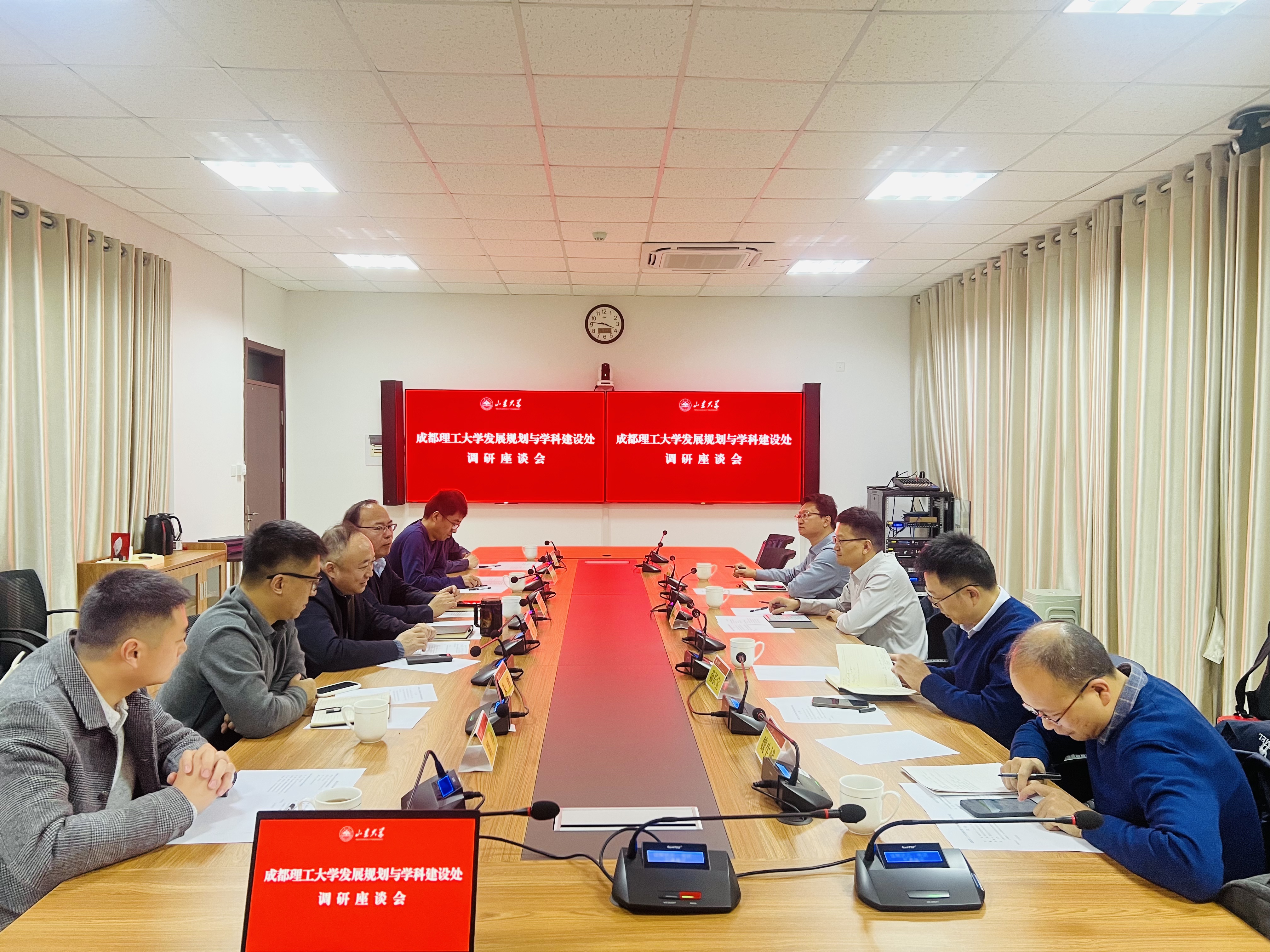 成都理工大学发展规划与学科建设处副处长茆长宝、李坤,有关科室负责人,前沿交叉科学青岛研究院院长助理朱辉,教师代表杨家跃、胡坤、郭明哲参加会议。