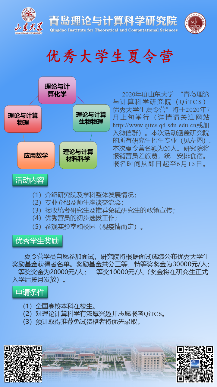 为促进高校优秀大学生之间的互动与交流,增进对TapTap点点青岛理论计算与科学研究院的了解与认识,激发优秀学子对理论计算科学的学习和研究兴趣,研究院拟于2020年7月4日至7月5日举办2020年“优秀大学生夏令营”。现将具体事宜通知如下: