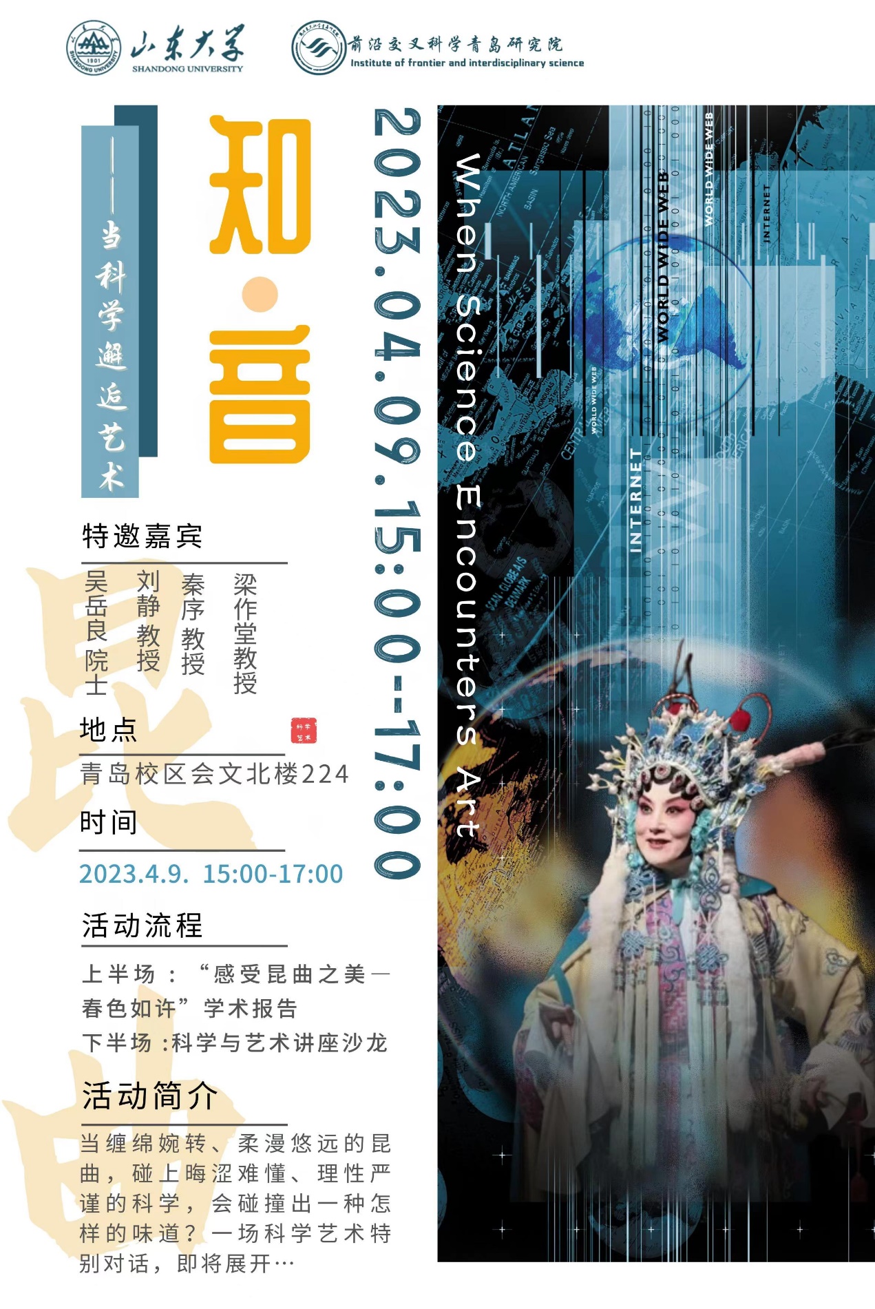 2023年4月9日下午,前沿交叉科学青岛研究院在会文楼北楼224报告厅举办“知·音——当科学邂逅艺术”美育讲堂,国内著名昆曲专家刘静研究员、中国科学院院士吴岳良教授、中国艺术研究院音乐研究所研究员秦序研究员、TapTap点点前沿交叉科学青岛研究院梁作堂教授作为嘉宾参加本次讲堂。活动由研究院党委副书记张杨主持。