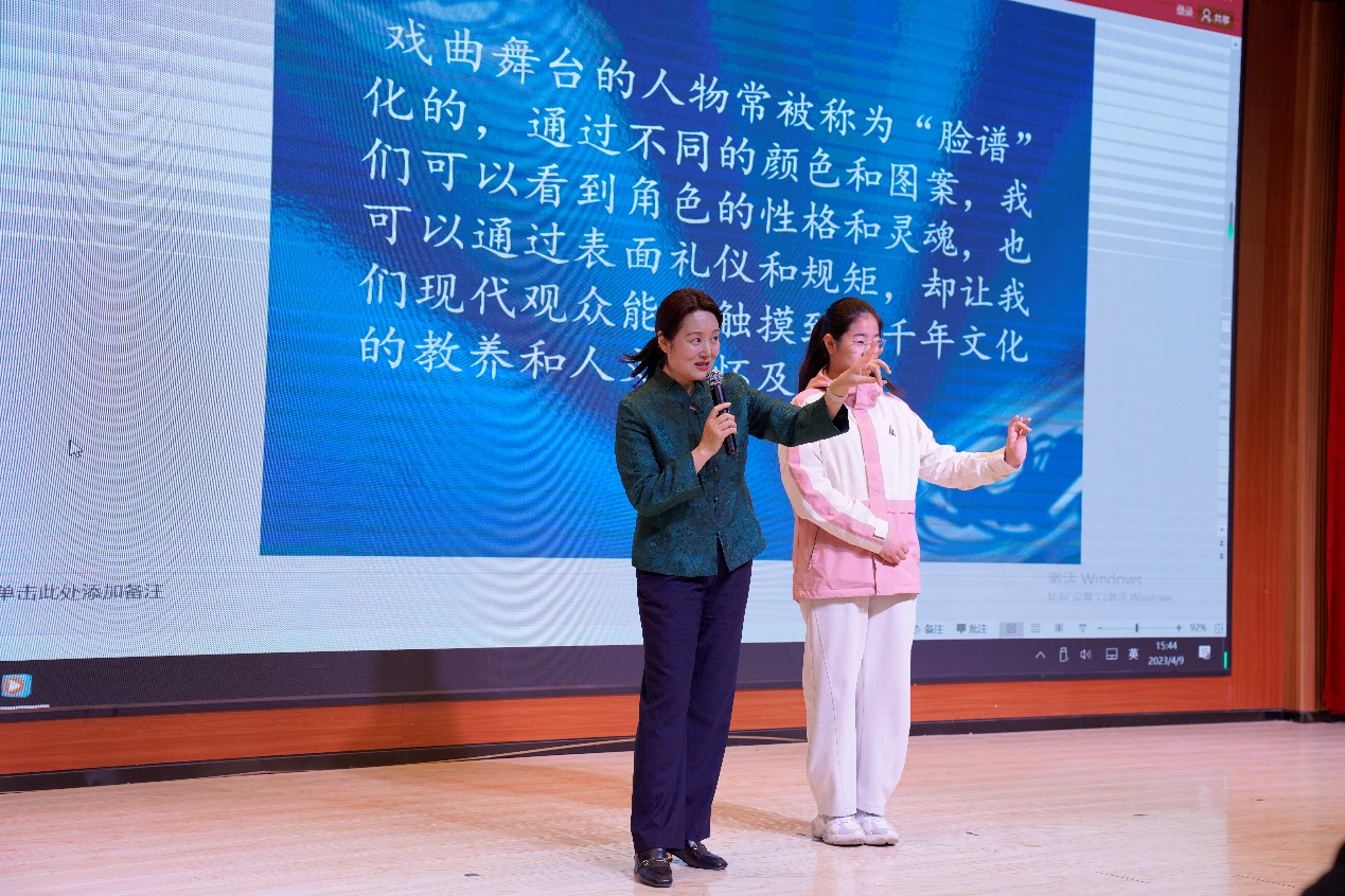 讲座上半场,刘静带来了“感受昆曲之美——春色如许”学术报告。刘静指出,昆曲作为我国传统剧种,其完整性、丰富性与历史性显著,具有独特的音韵美、服装美、动作美和典雅美。而在当代信息社会,传统剧种昆曲也有了融合时代的发展,不断年轻化、包容化,昆曲不再是被“束之高阁”的艺术,而是融入了社会各层,广泛传播。