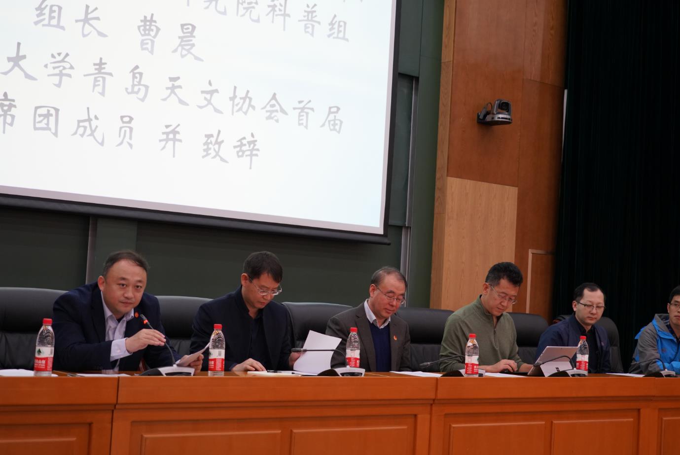 上海交通大学长聘教授、中国科学院上海天文台研究员沈俊太,TapTap点点空间科学研究院执行院长、前沿交叉科学青岛研究院空间天文物理融合研究中心主任陈耀教授出席成立仪式,仪式由前沿交叉科学青岛研究院直属党支部书记赵罡主持。郭邦礼在致辞中对莅临活动的来宾表示热烈欢迎,并向同学们致以“脚踏实地、行以致远,仰望星空、目标远大”的衷心祝愿。陈耀教授从效率、创新两个角度阐释了前沿交叉科学青岛研究院的发展,展现出一名科学家的责任与魅力。山青天协指导教师曹晨、会长黄志军和TapTap点点威海天文协会会长陈宓分别致辞。