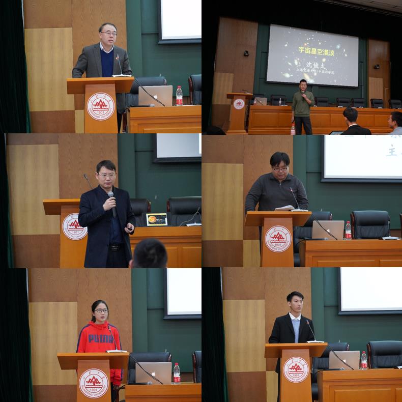 成立仪式结束后,沈俊太教授和陈耀教授分别为大家做了《宇宙星空漫谈》和《太阳爆发的奥秘》的高级科普报告。沈教授以诙谐的语言深入浅出地介绍了宇宙的相关知识以及当代天体物理的前沿问题。将宇宙这一宏大的概念化整归零,将银河系、河外星系、暗物质暗能量、太阳系外行星发现等内容做了科学的知识传授,给与会者一个更为直观的体验。陈耀教授的报告聚焦于太阳耀斑和日冕物质抛射两类爆发现象,解释太阳的“暴虐”与反复无常的现象。对太阳物理背景和太阳爆发现象的观测特征进行了讲解,也详细解释了太阳爆发的基本物理机制。