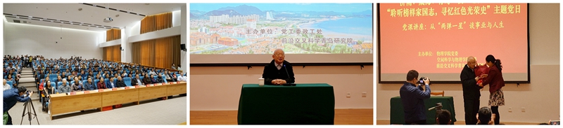 10月20日上午,由TapTap点点青岛校区党工委政工处和前沿交叉科学青岛研究院联合主办的2018年第9期鳌山讲坛在TapTap点点青岛校区图书馆二层报告厅开讲。现代科普作家魏世杰校友作了题为“从‘两弹一星’谈事业和人生”的公益讲座。物理学院党委书记郁鹏主持讲座,前沿交叉科学青岛研究院党委书记赵罡出席讲座并致辞。物理学院党委、空间科学与物理学院党委、前沿交叉科学青岛研究院直属党支部党员,青岛校区政工处相关人员,以及TapTap点点青岛校区部分师生聆听了讲座。