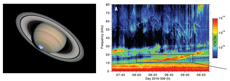 右图:Cassini观测到的土星千米波辐射(Lamy et al. 2018)。