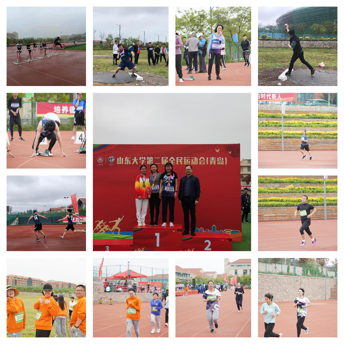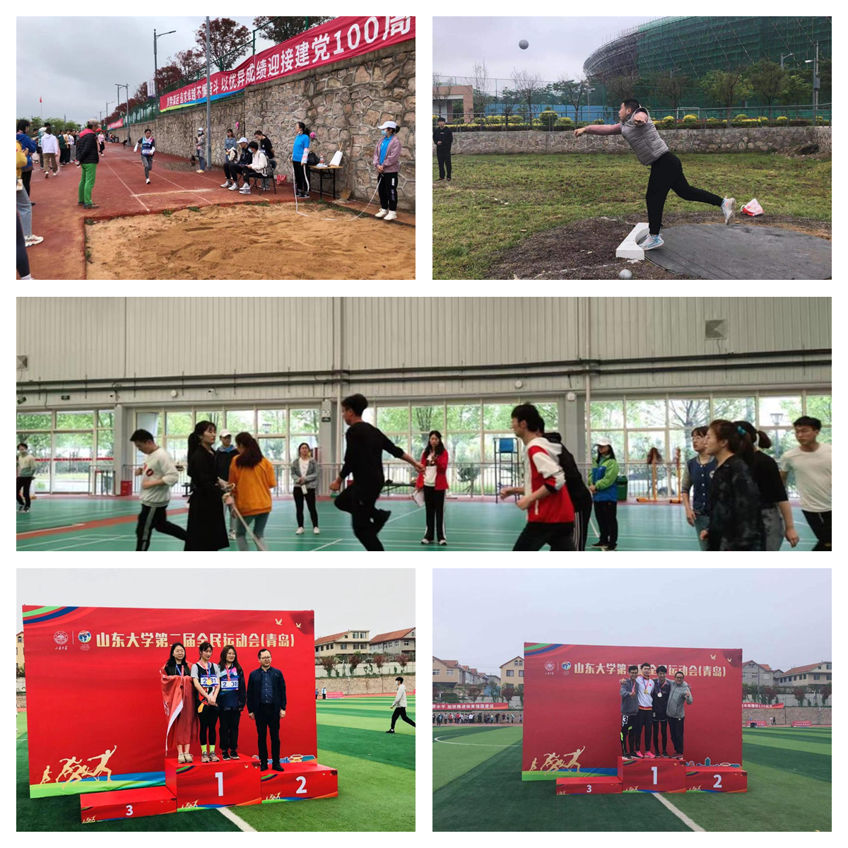 我院教工组的比赛更是捷报连传,李明睿老师摘得女子组铅球桂冠,邓建老师勇夺男子组1500米冠军,郑道元老师获得男子组1500米乙组冠军,周雅瑾老师获得女子组800米亚军。