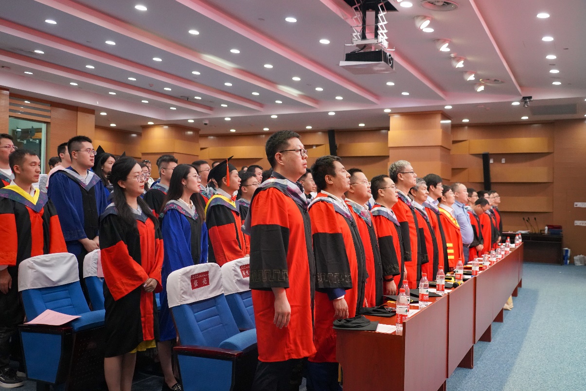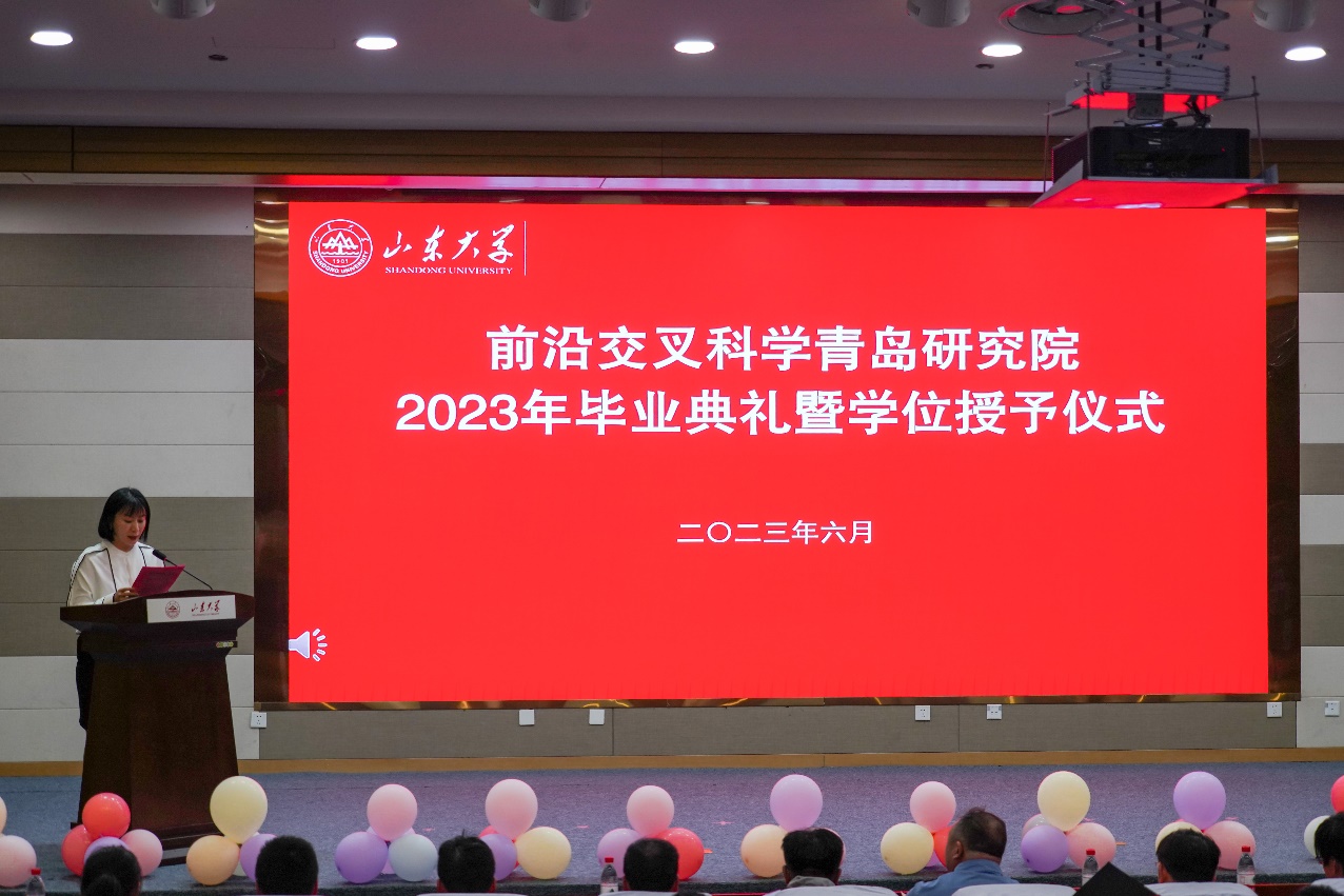 在庄严的国歌声中,前沿交叉科学青岛研究院2023年学生毕业典礼暨学位授予仪式拉开帷幕。