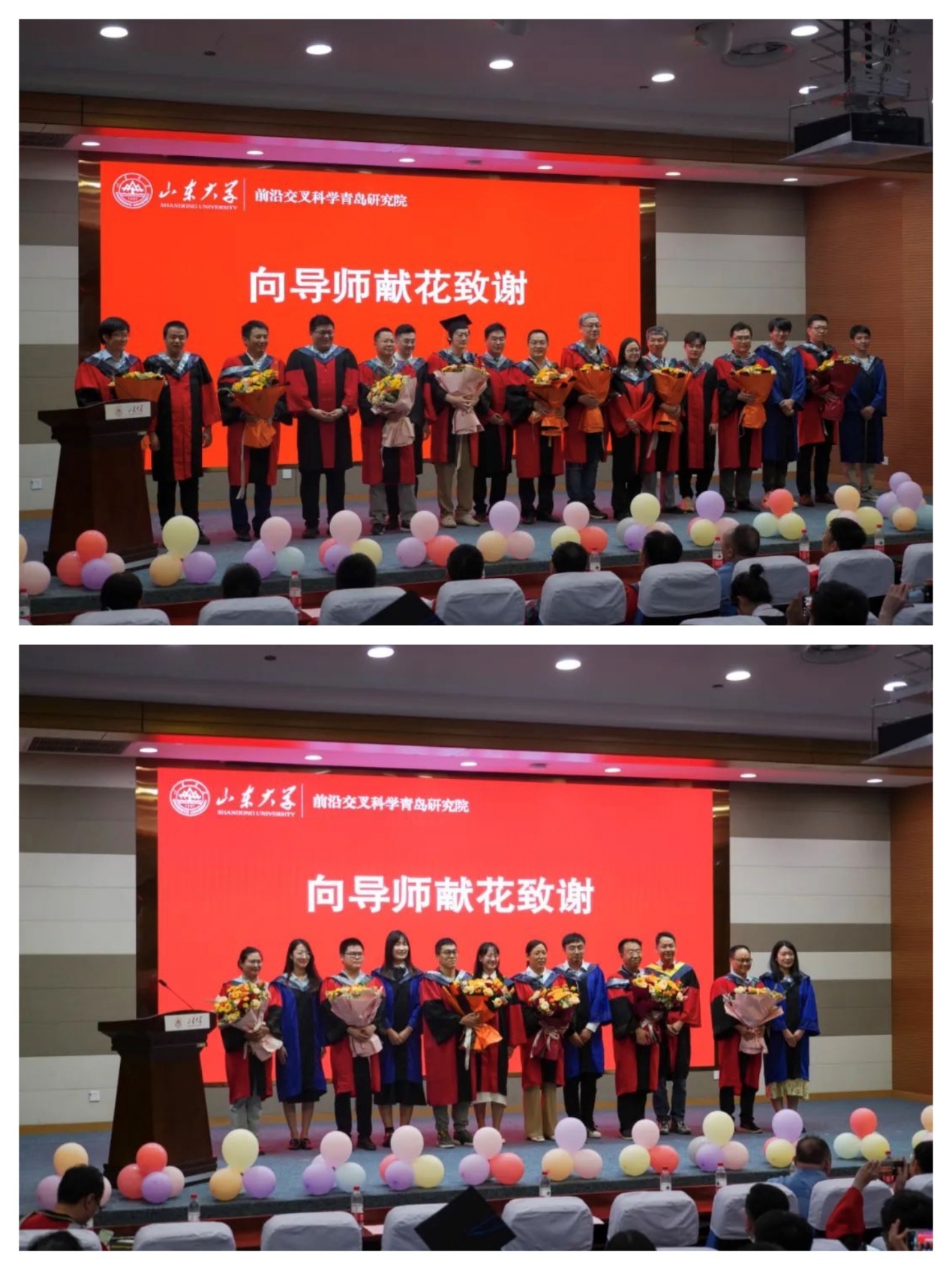 毕业生导师代表李春霞教授、张宏教授代表全体导师先后发言。李春霞教授对全体毕业生送上毕业祝福,希望全体毕业生能将个人追求融入国家追求中,彰显山大人的品格,传递山大精神。张宏教授指出,广大毕业生要瞄准前进目标,牢记心中信念,不忘肩上责任,不要停止对优秀的追求;更要学会感恩身边每一个人,时刻散发正能量,过好人生的每一天。