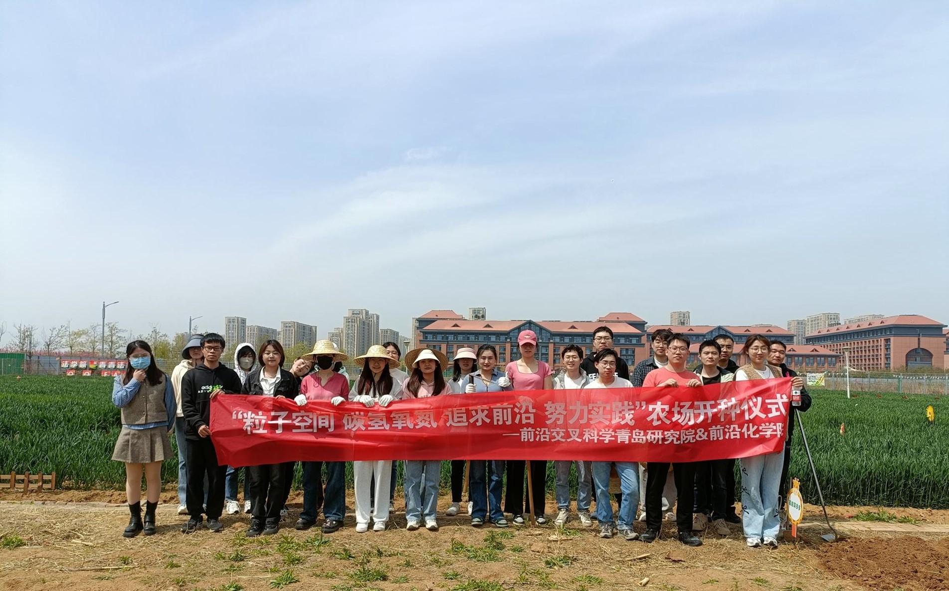 为充分发挥劳动育人功能,弘扬新时代大学生劳动精神,4月19日,前沿交叉科学青岛研究院联合前沿化学研究院在青岛校区大学生实验农场开展“粒子空间、碳氢氧氮、追求前沿、努力实践”劳动农场春种活动。本次活动吸引了由两院40余名研究生和本科生组成的9支队伍参加。