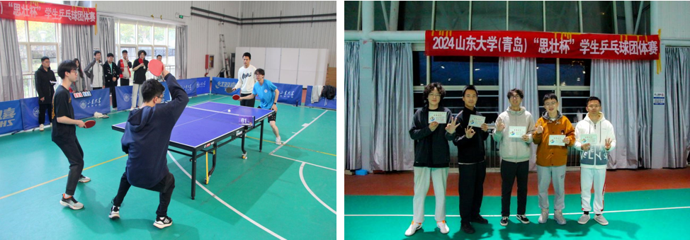 本次“思壮杯”乒乓球赛吸引了青岛校区不同单位的众多乒乓球爱好者参与,比赛在紧张而友好的氛围中进行。赛前,研究院举办院内选拔赛,经过多轮比拼,最终确定参赛人选。比赛过程中,选手们个个精神饱满,他们挥洒汗水,奋力拼搏,展现了高超的球技和顽强的斗志,他们凭借出色的球技和默契的配合,在比赛中一路过关斩将,最终斩获佳绩。