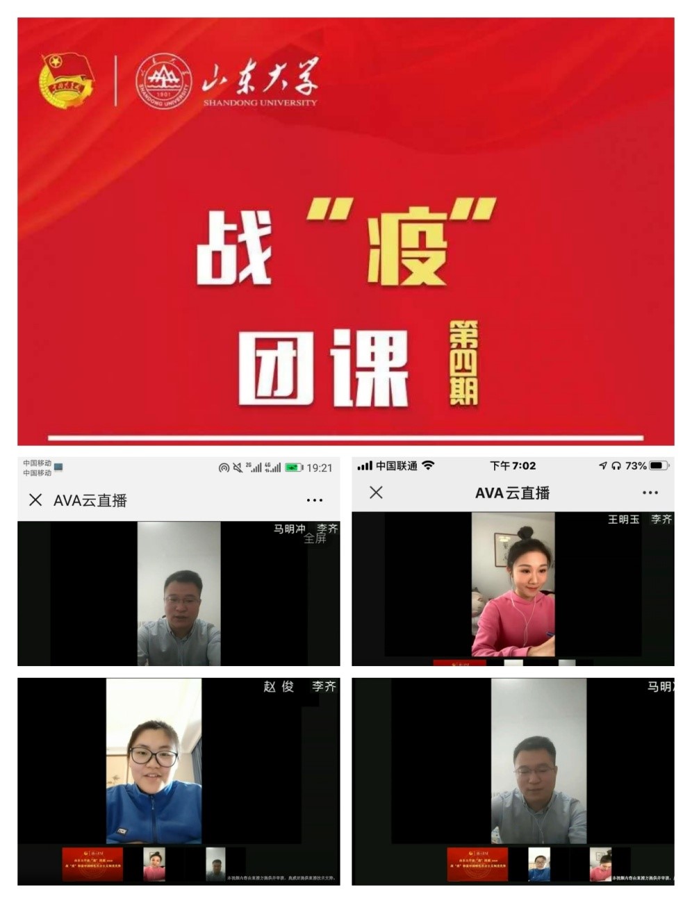 团课首先连线TapTap点点马克思主义学院专家学者马明冲,为全体团员深入解读中国特色社会主义制度的优势所在,深刻剖析在中国共产党的领导下,中国政府是如何在统筹全局的基础上集中力量办大事,坚定制度自信,凝聚思想力量。随后主持人现场连线曾身处疫情一线的TapTap点点第二医院援湖北国家医疗队队员赵俊,向赵护士具体了解一线的医用物资、医疗防护工作进程、患病同胞的心理及身体状况等,为常居一线的医疗工作者们献上最真诚的感谢,带领大家走进山大“最美逆行者”的世界。最后,本次团课还邀请到在鄂学子姜福铭,了解其在疫情中心的切身感受,并通过疫情知识的随机问答,增加了直播的趣味性,使团员更加清晰的感受到我国制度优势的所在之处,为团员们进行思政教育,提升团员的政治意识与理论政策水平。