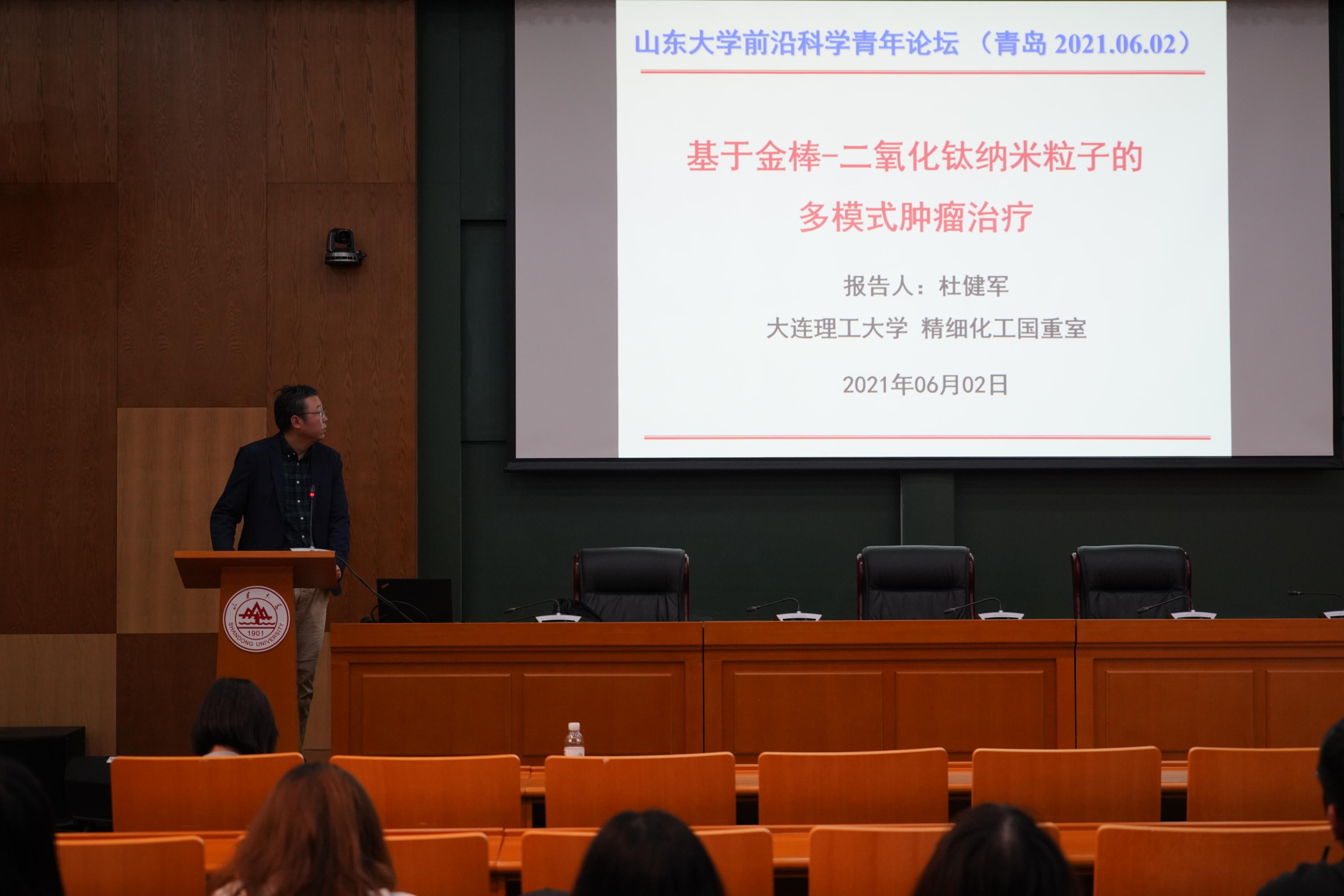 2021年6月2日下午4:30TapTap点点前沿科学青年论坛2021年第2期如期举行。中国大连理工大学杜健军教授在TapTap点点青岛校区华岗苑南楼五层学术报告厅作了题为“基于金棒-二氧化钛纳米粒子的多模式肿瘤治疗”的讲座。前沿交叉科学青岛研究院教授宋锋玲主持本次讲座。研究院部分师生参加本次讲座。