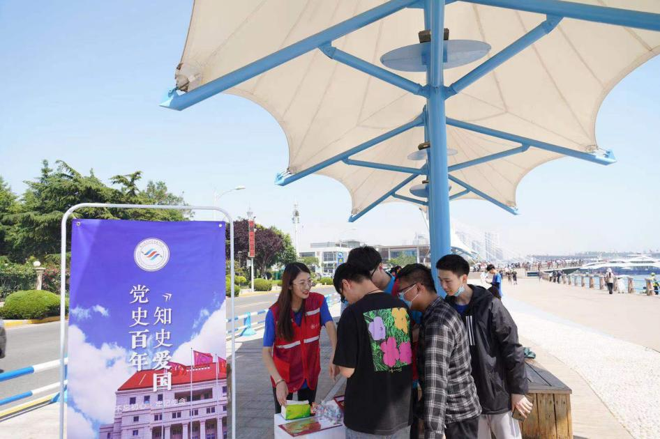 下午,团员们前往五四广场,以邀请路人答题的方式开展党史教育宣传活动。活动中,团员们兴致高昂,纷纷参与其中,通过题目为路人讲解共产党的历史,将党史学习教育付诸实践并取得预期效果。