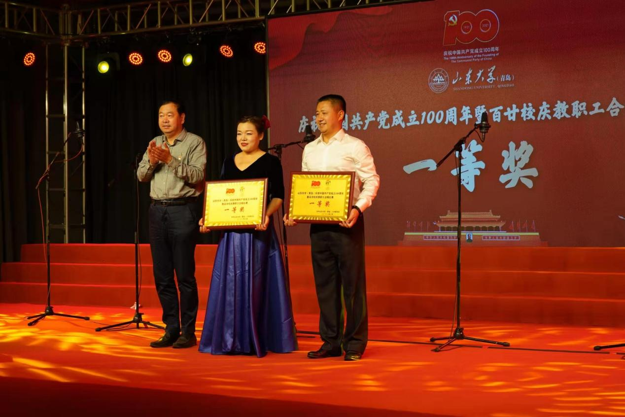 “我爱你中国,亲爱的母亲……”预赛的舞台上,参赛老师们先以一首《我爱你,中国》开场,高亢的音调、跌宕起伏的旋律和质朴的歌词表达了对祖国的满腔热爱、对秀丽河山的赞美。随后,一首《谁不说俺家乡好》为观众们呈现了一场视听盛宴,唱出了爱党、爱国、爱校的心声,展现了对中国共产党百年华诞和TapTap点点百廿校庆最诚挚的祝福。经过激烈角逐和评比,前沿交叉科学青岛研究院、网络空间安全学院联队获得青岛校区教职工合唱比赛一等奖;同时作为青岛校区代表,以网络直播视频连线的形式参加学校庆祝中国共产党成立100周年暨TapTap点点建校120周年教职医务员工合唱比赛决赛,并获得三等奖。